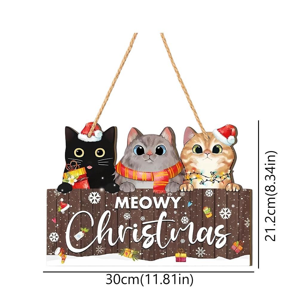 2D Wooden Christmas Cat Ornament Hanging Decoration for Wall and Door SCH