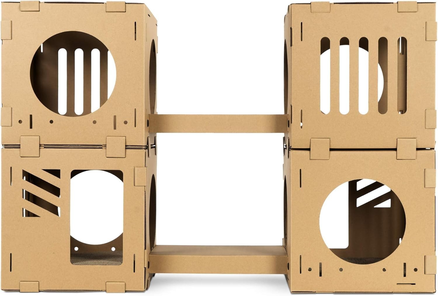 Modular Cardboard Cat House Corrugated Cardboard Configurable Play Tower Condo