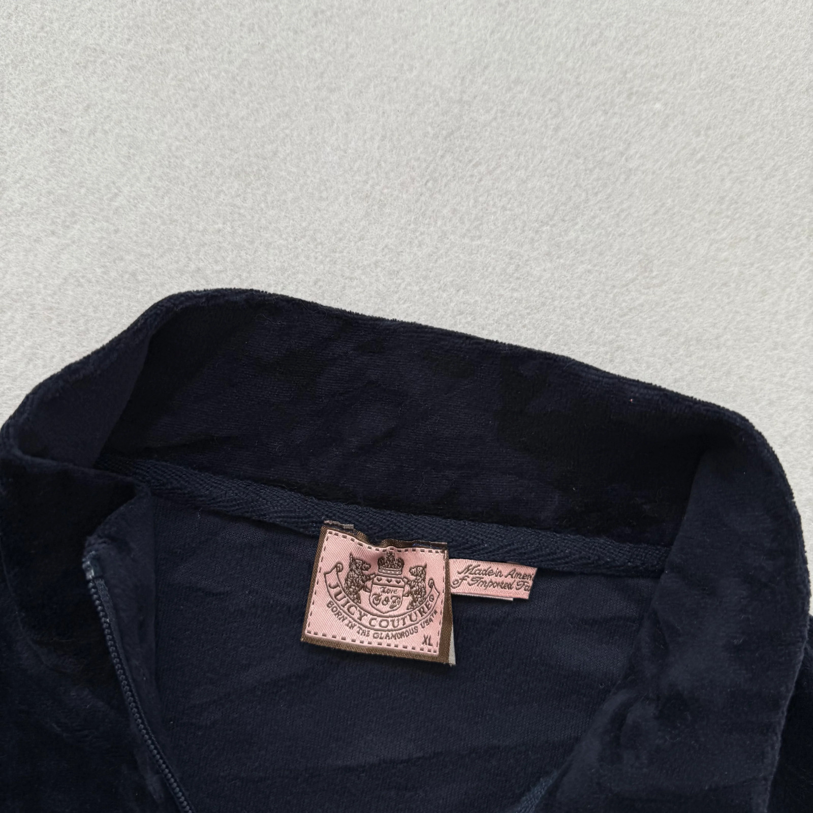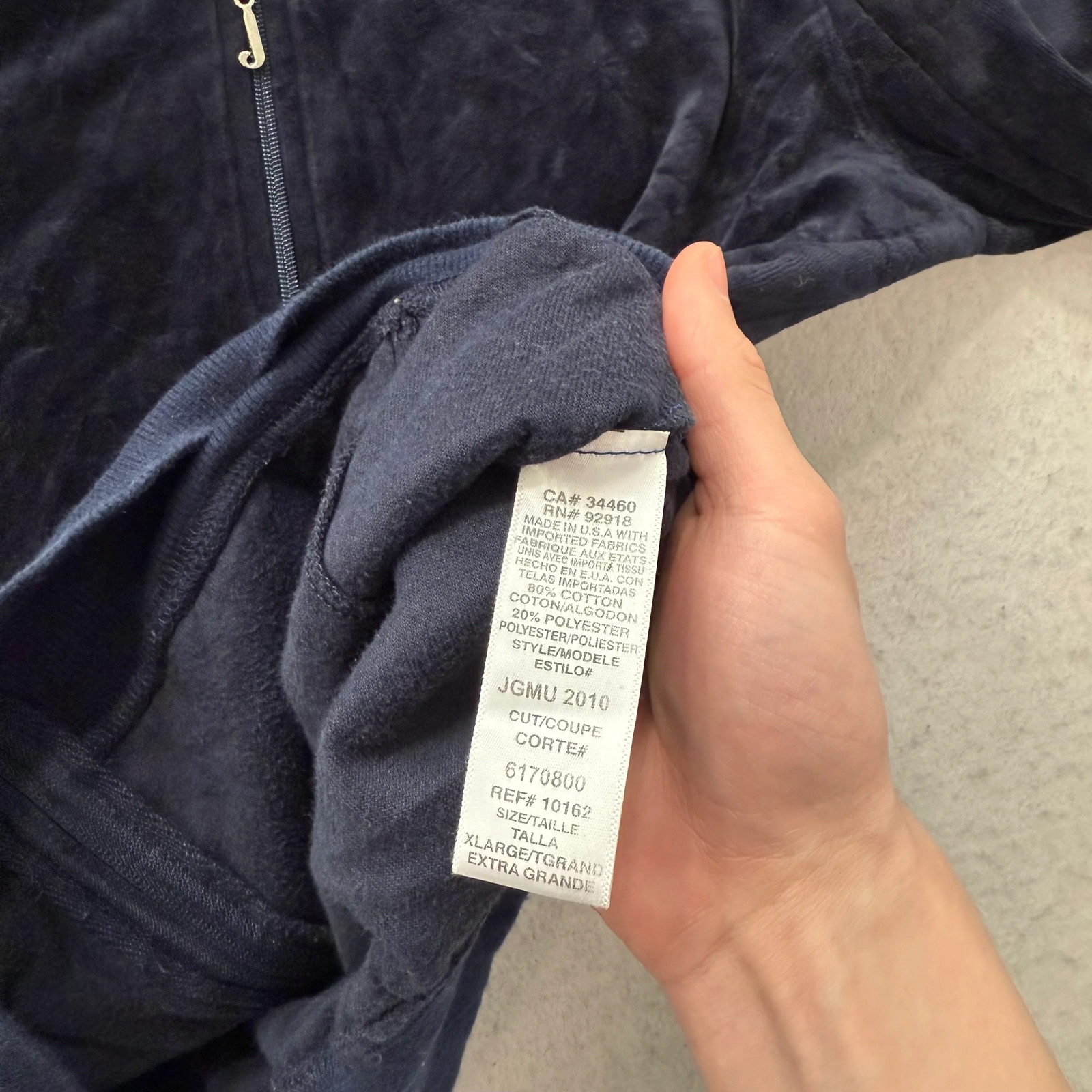 Juicy Couture Women Navy Blue Velour Full Zip Track Jacket Mock Neck Y2K Size XL