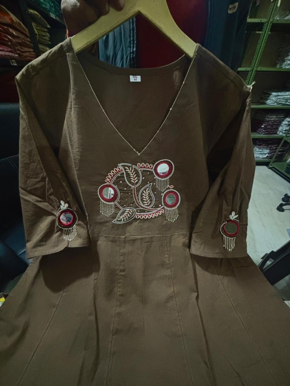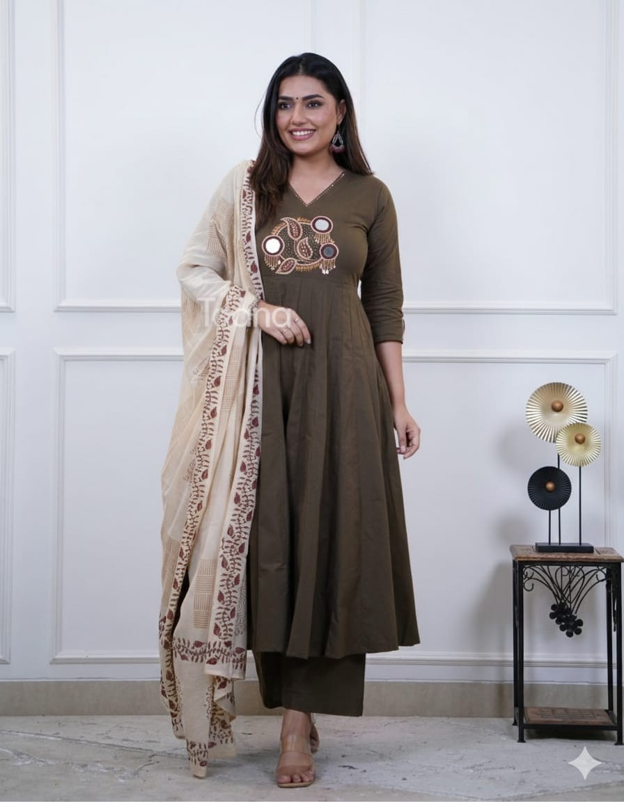 Indian Women s Brown Anarkali Kurta Set with Embroidered Yoke Dupatta