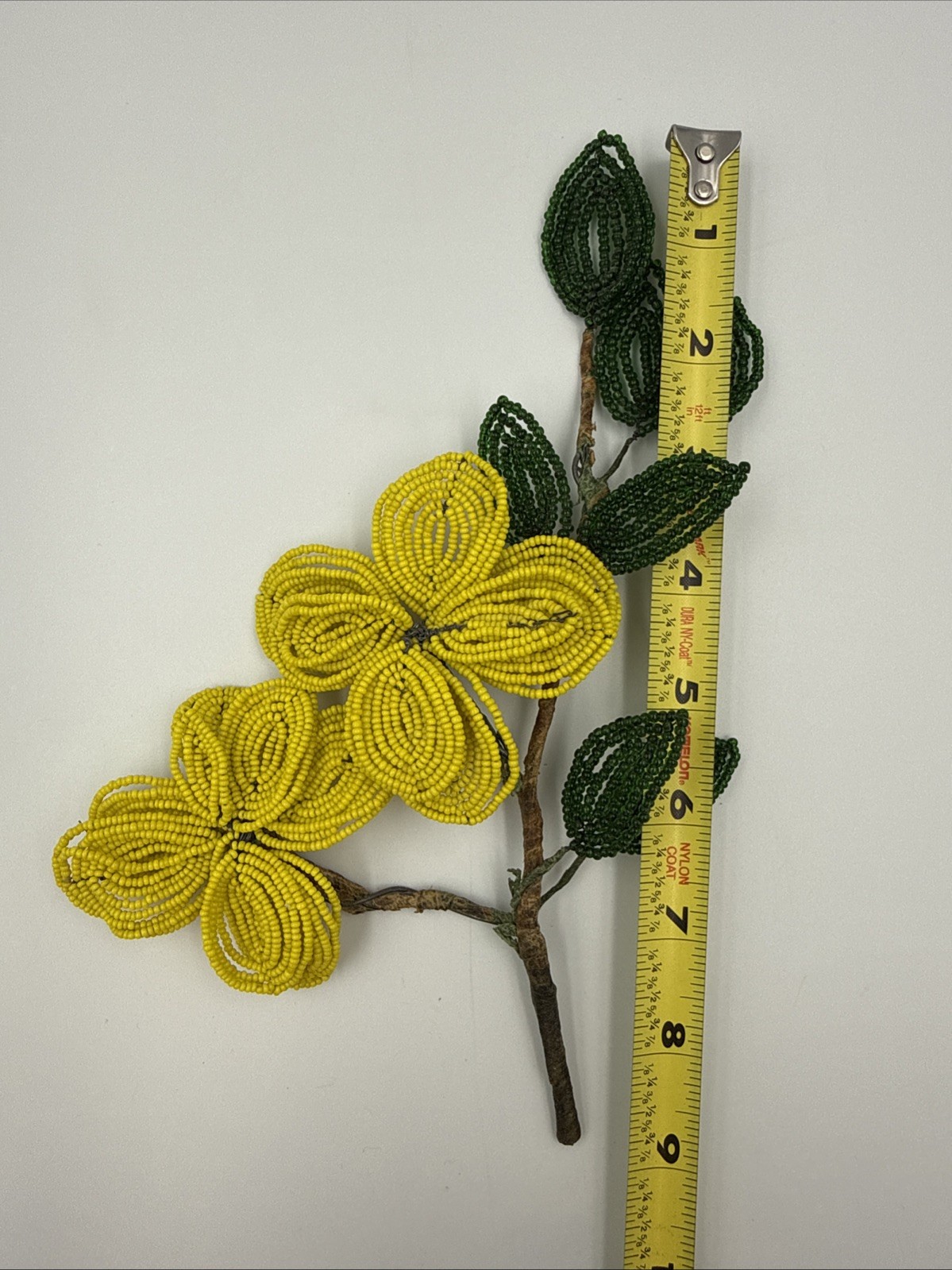 French Beaded Yellow Flowers Vintage 9 in
