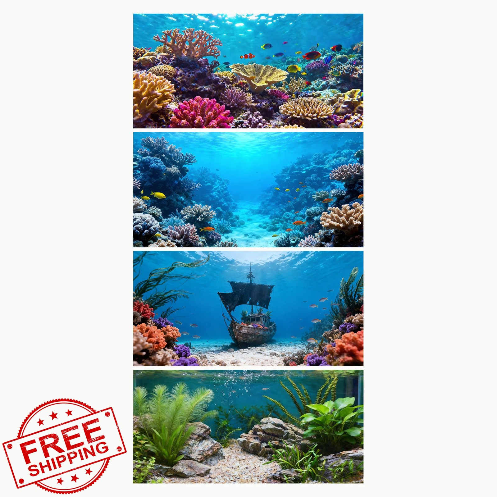 Ricomboo 4pk Aquarium Background 36x18 Undersea Coral Plant Decor