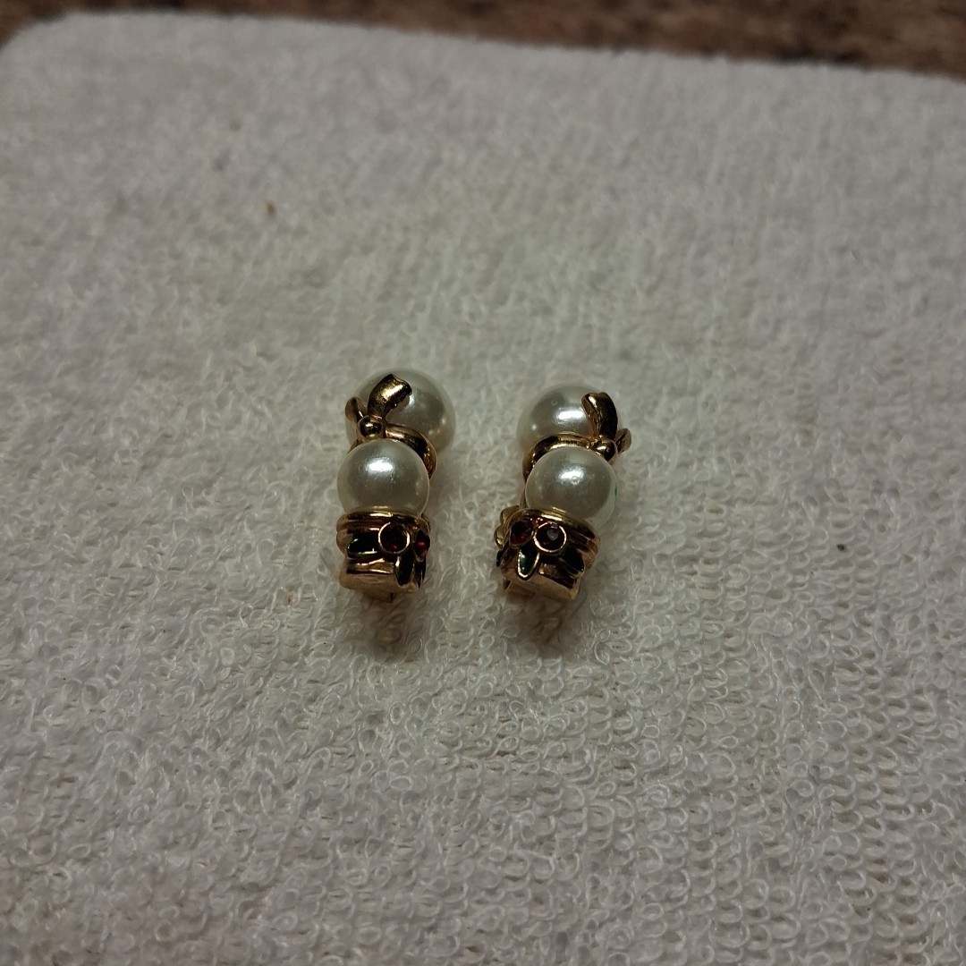 как выглядит Avon Snowman Earring White Faux Pearl Gold Tone Metal Christmas Pierced Vintage фото