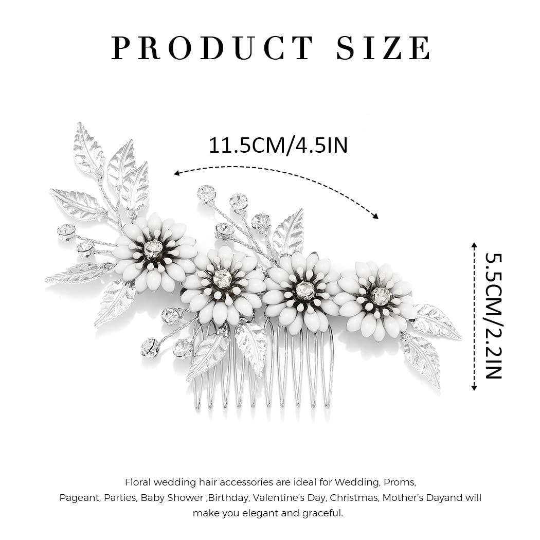 Bride Wedding Hair Comb Silver Flower Leaf Bridal Hair Piece Crystal Hair Acc...