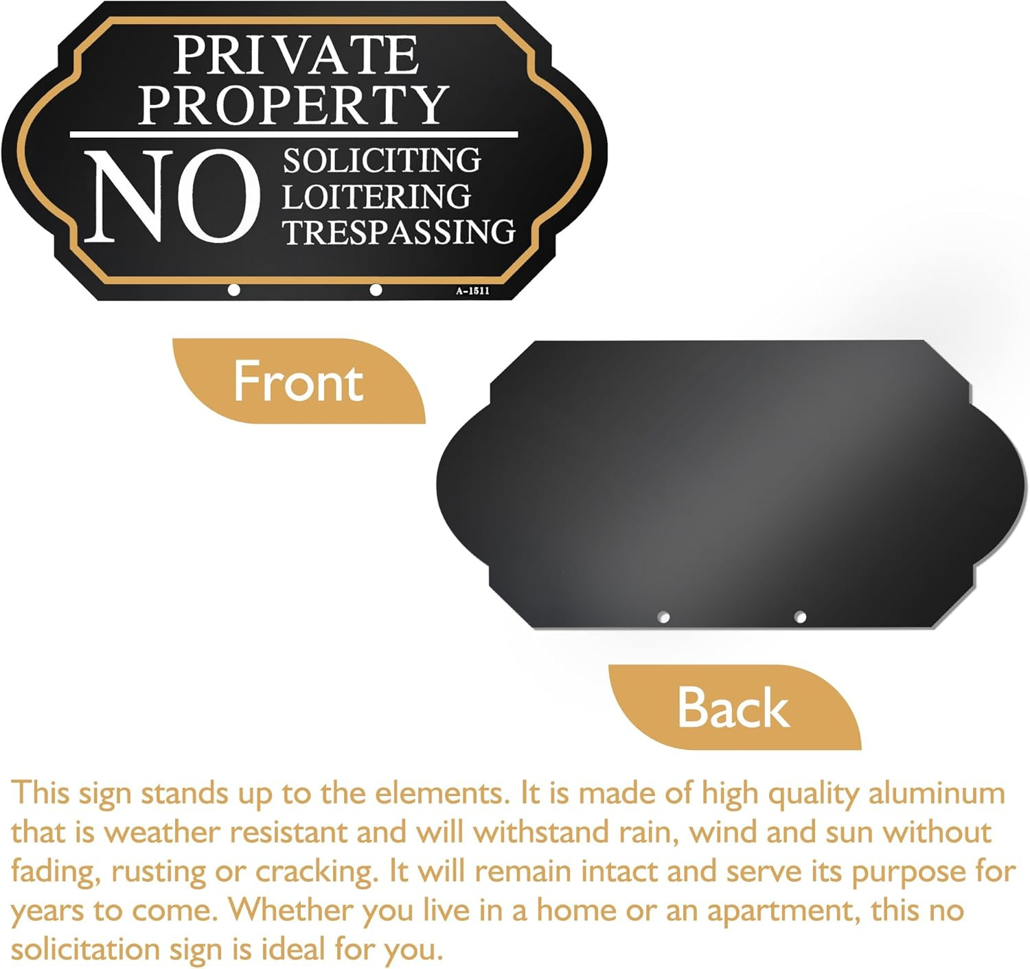 Private Property No Trespassing Sign with Stake, No Soliciting Sign for House 5x