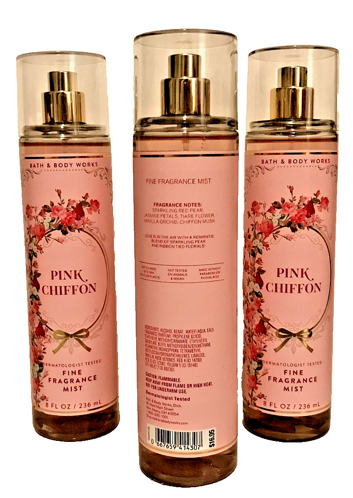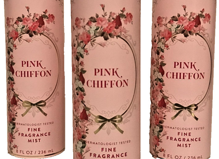 как выглядит PINK CHIFFON FINE FRAGRANCE MIST BODY SPRAY 8 OZ BATH BODY WORKS LOT 3-PACK NEW фото