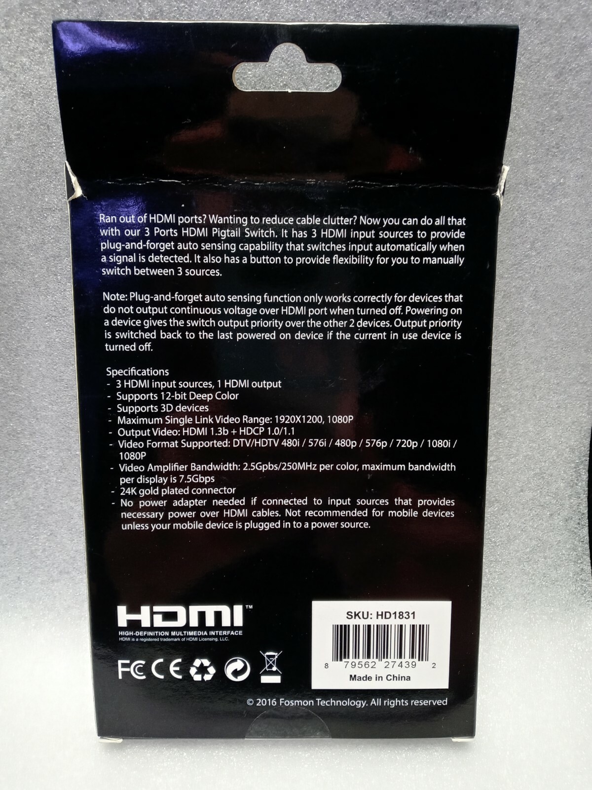 Connector B: 3X HDMI Standard Female