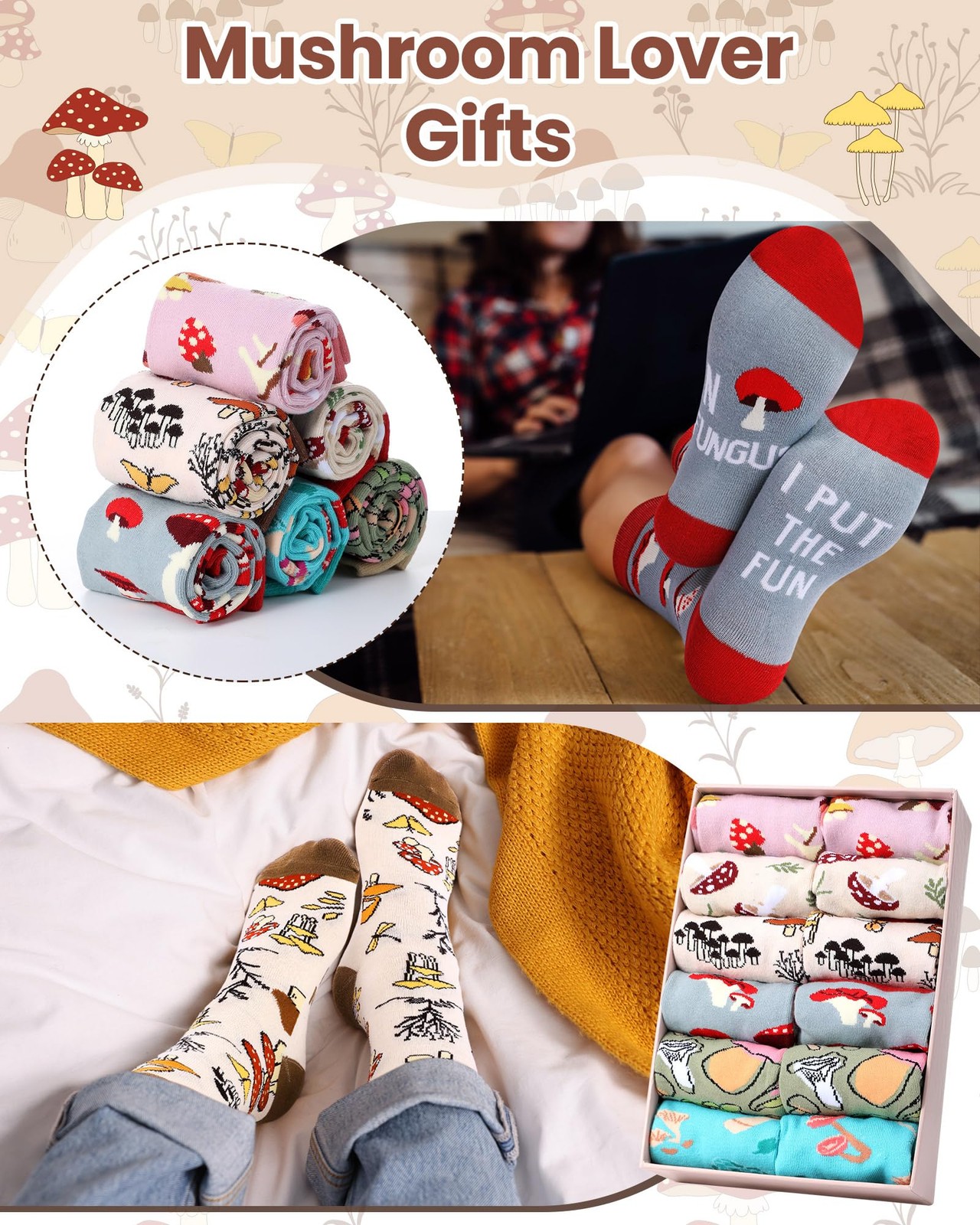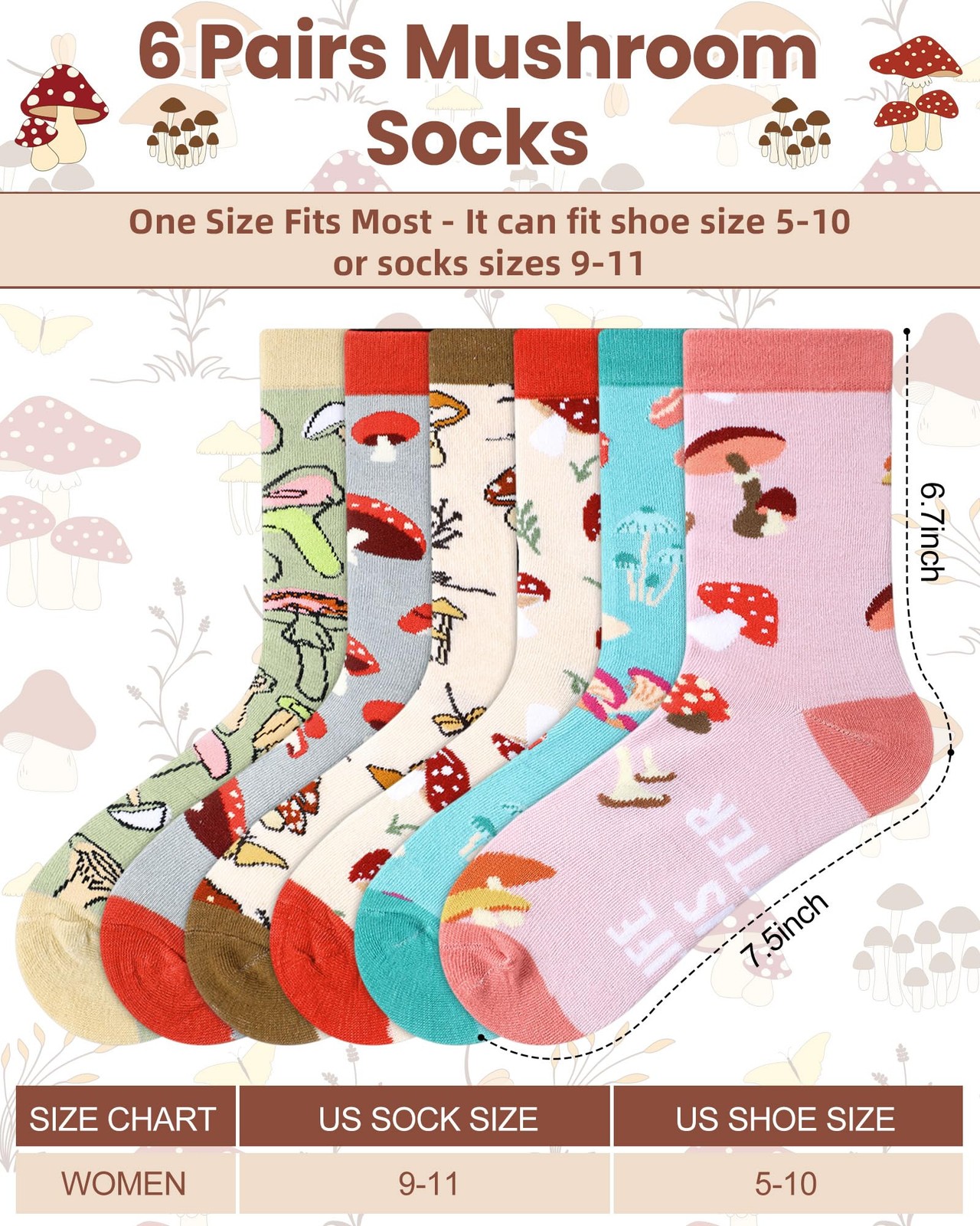 Bonuci 6 Pairs Funny Mushroom Socks Novelty Breathable One Size, Multicolor