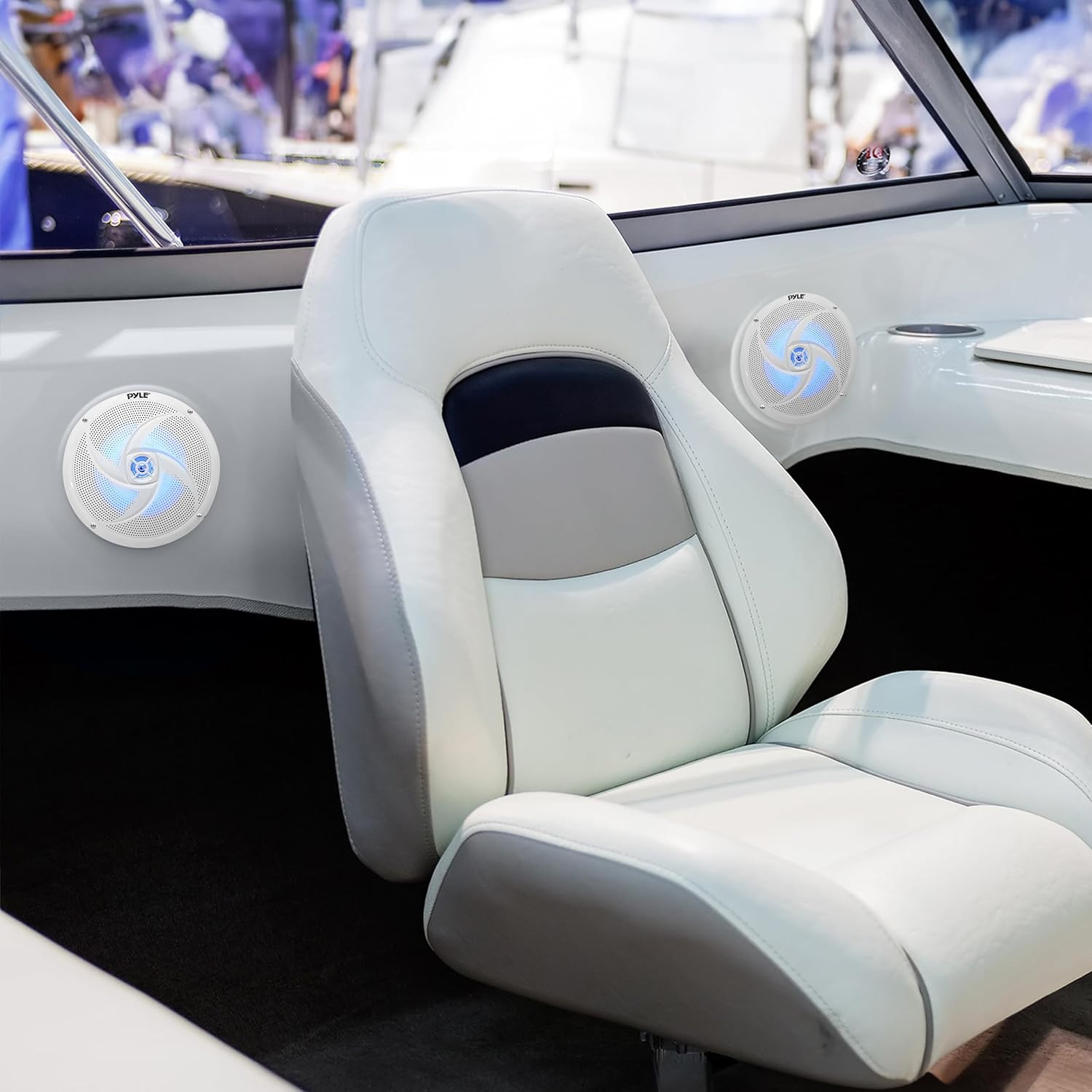 как выглядит usa 8 Inch Marine Speakers - 2 Way Full Range Stereo Sound, 160 Watt, White - LE фото