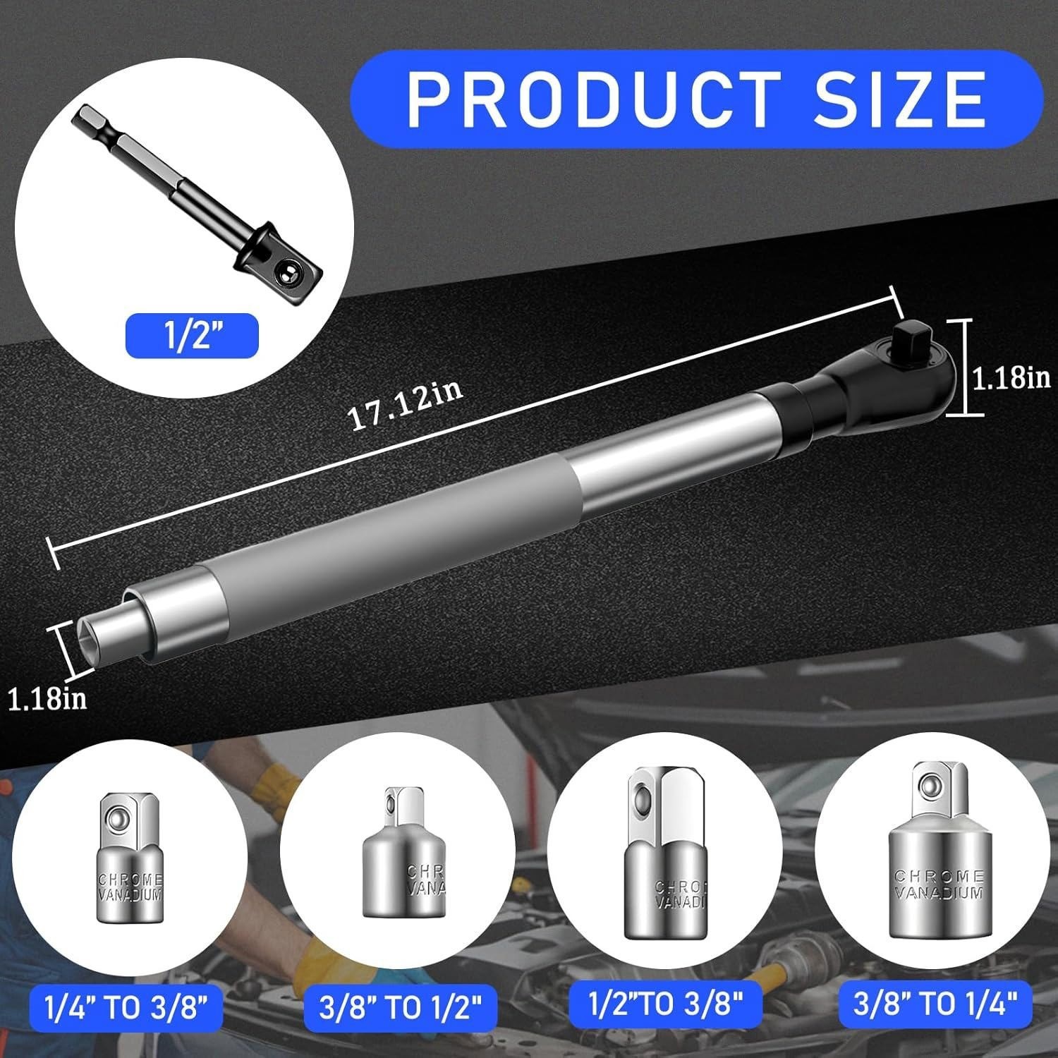 как выглядит 1/2 3/8 1/4" Offset Extension Wrench Impact Ratchet Extender For Electric Drills фото