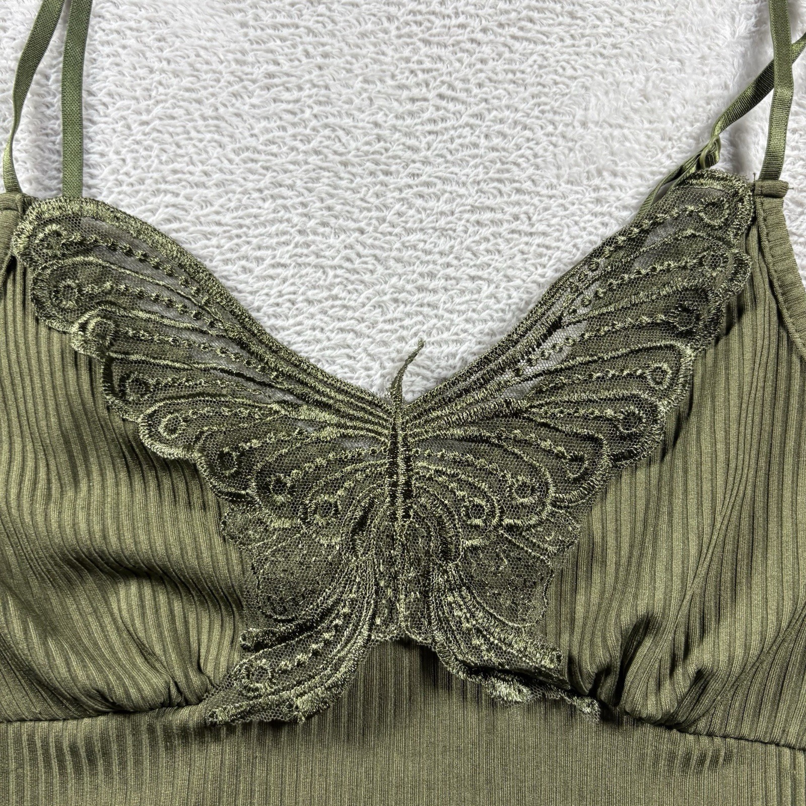 Romwe Crop Cami Women s S OIive Green Lace Fairycore Festival Whimsigoth Y2K 3B