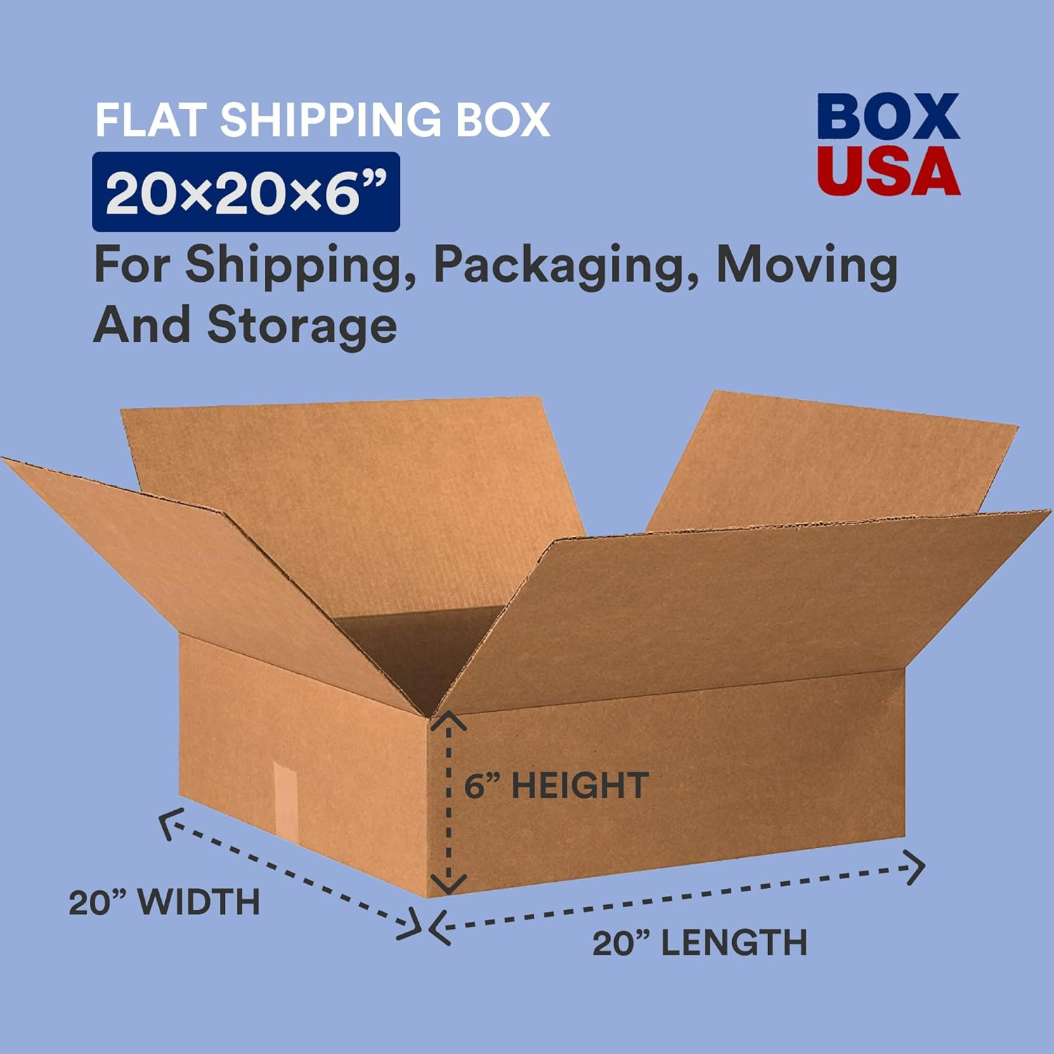 20X20X6 Flat Corrugated Boxes, Flat, 20L X 20W X 6H, Pack of 15 Shipping, Pack