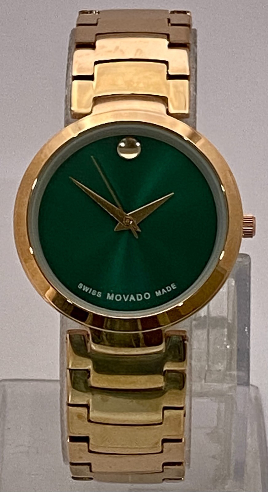 Refurbished Rare Rose-Gold Tone Movado Slim Green Dial Women's Quartz Watch
