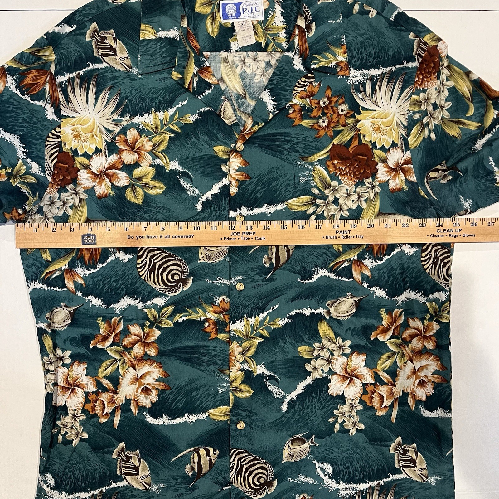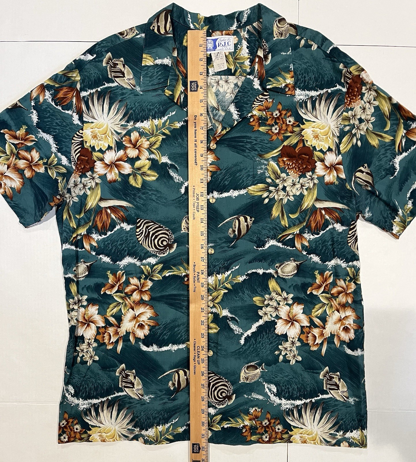 как выглядит Vintage 80 s RJC Hawaiian Shirt Men s 2XL Dark Green Fish Floral Made In Hawaii фото