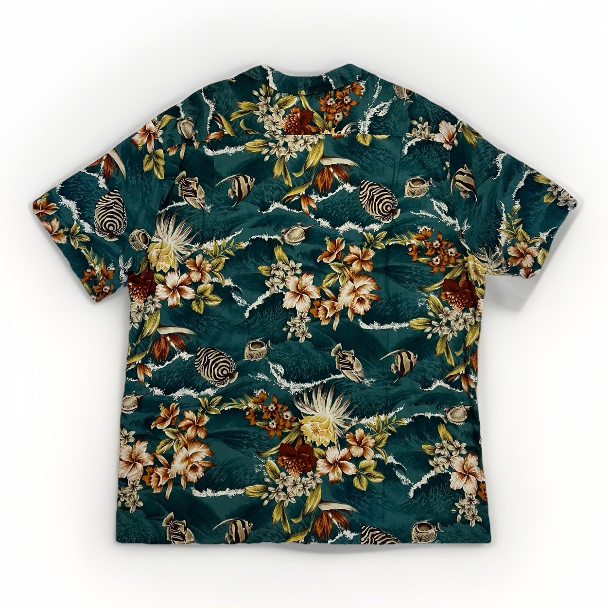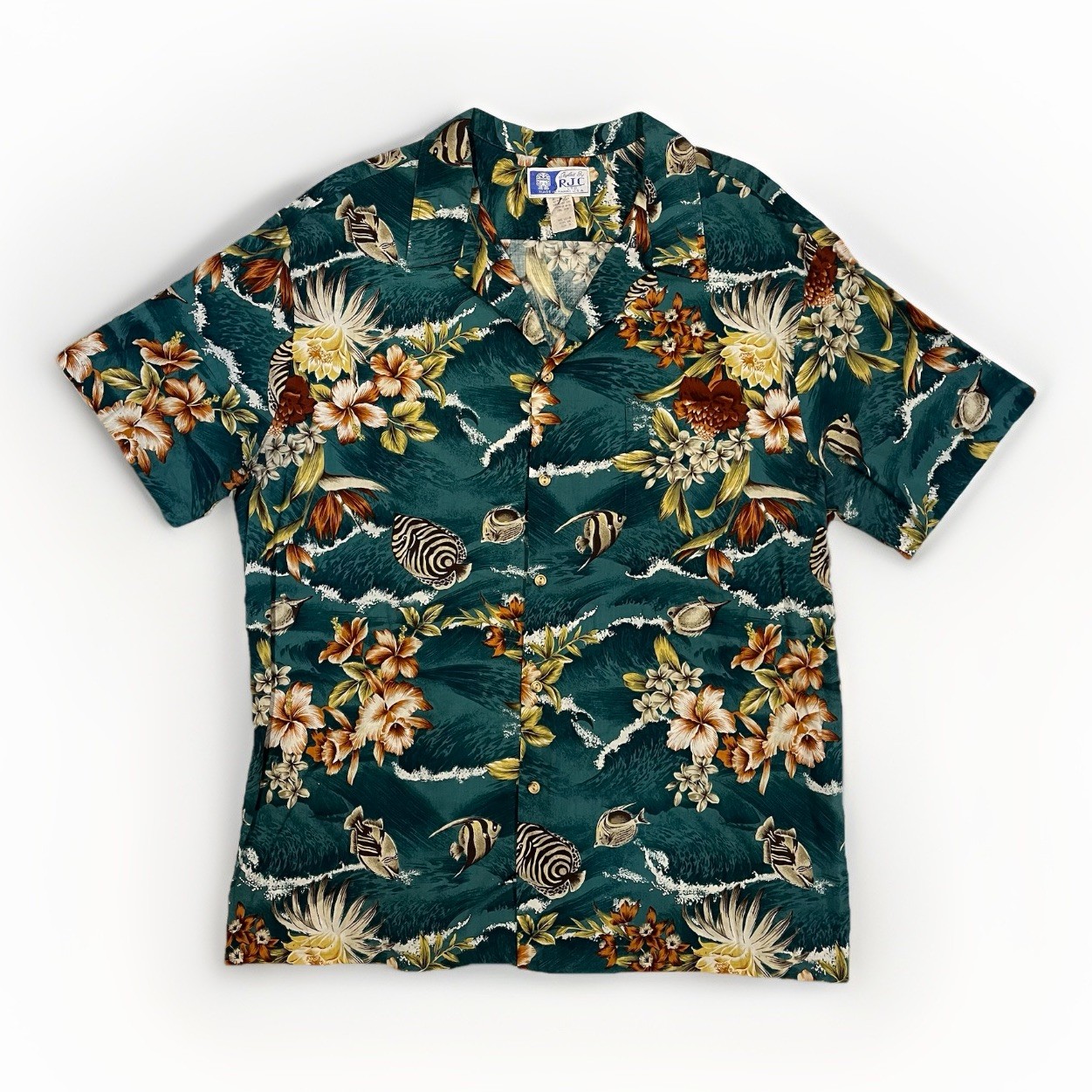 Vintage 80 s RJC Hawaiian Shirt Men s 2XL Dark Green Fish Floral Made In Hawaii