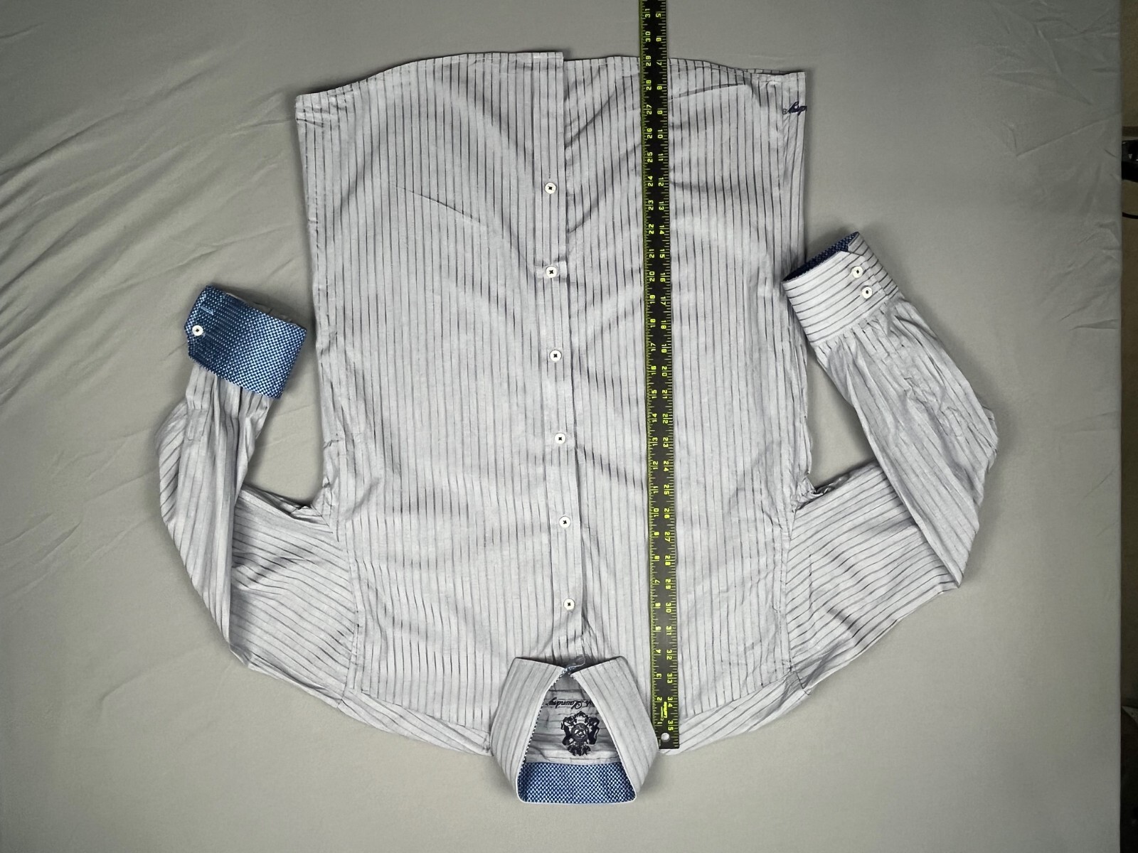 как выглядит English Laundry Blue Striped Flip Cuff Button Up Long Sleeve Mens Size 16.5-32 фото