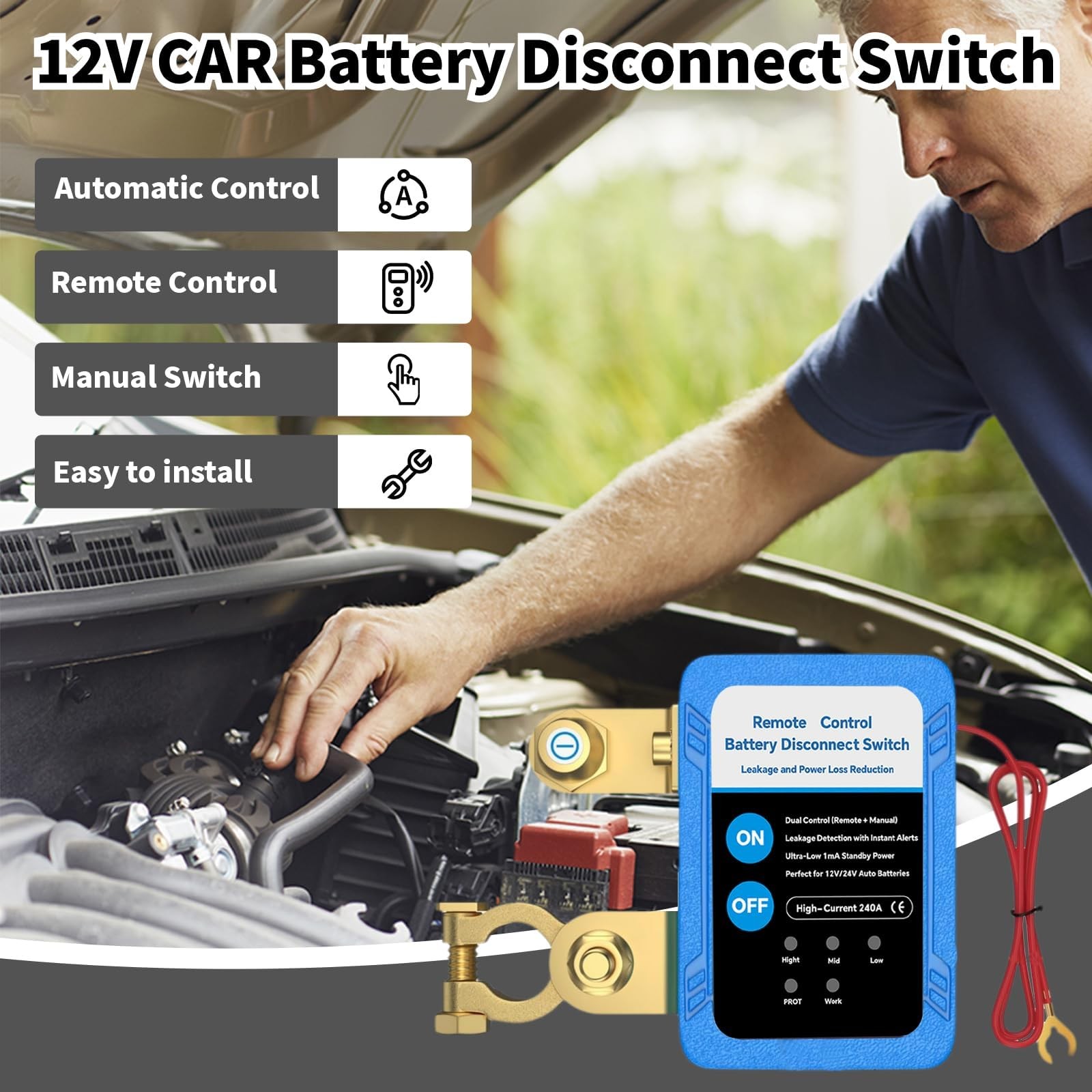• Remote Battery Disconnect Switch 12V 240A, Smart Voltage Kill for Car...