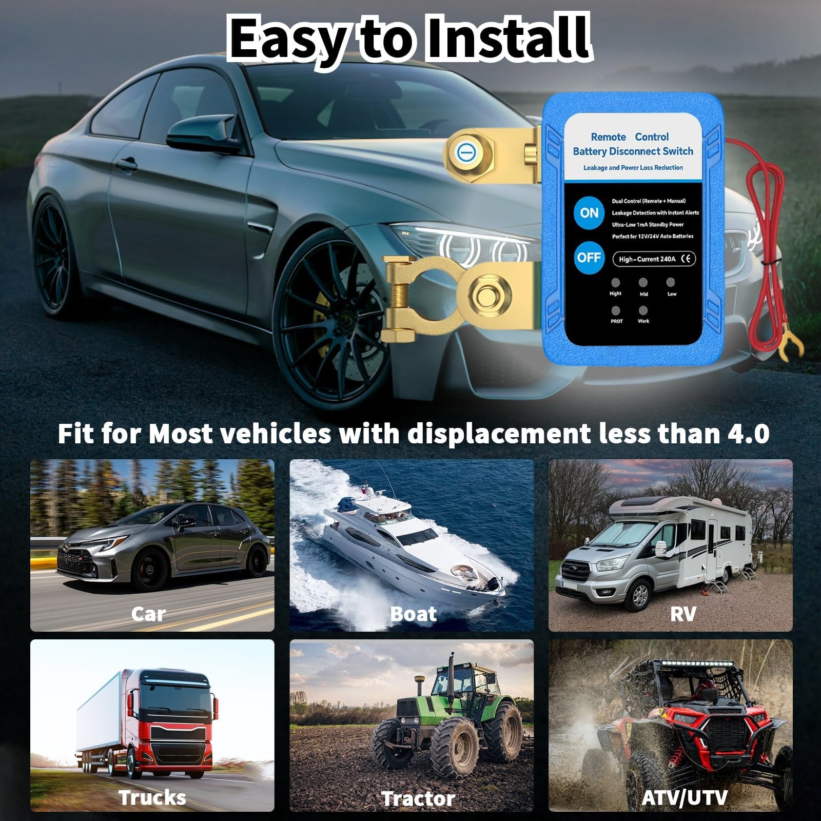 Remote Battery Disconnect Switch 12V 240A, Smart Voltage Kill for Car...