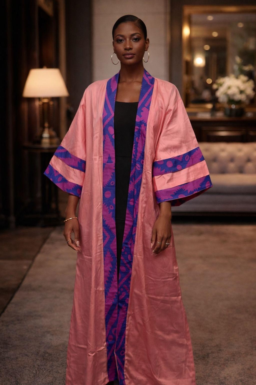 как выглядит African Ankara and solid Kimono Size - one size фото