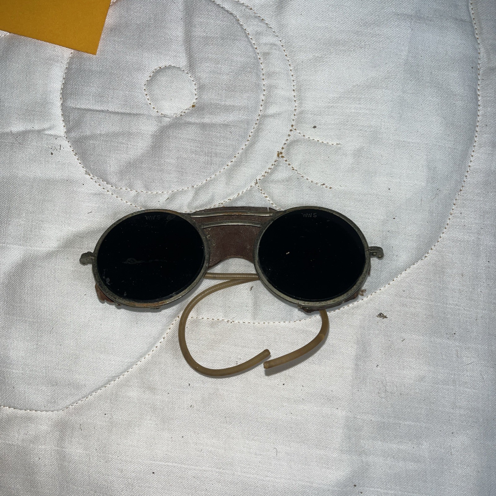 как выглядит Antique 1930 s Welding Glasses Folding Vintage Green Lens Steampunk фото