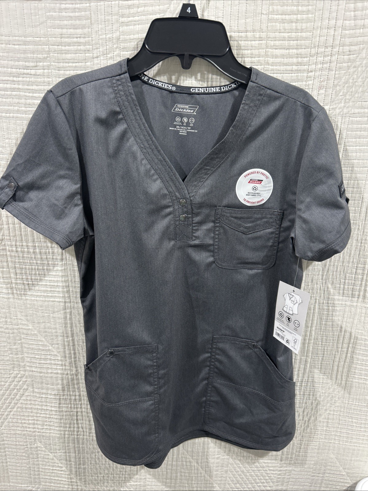 как выглядит Dickies Snap front Scrub Top Size XS Heather Pewter New фото