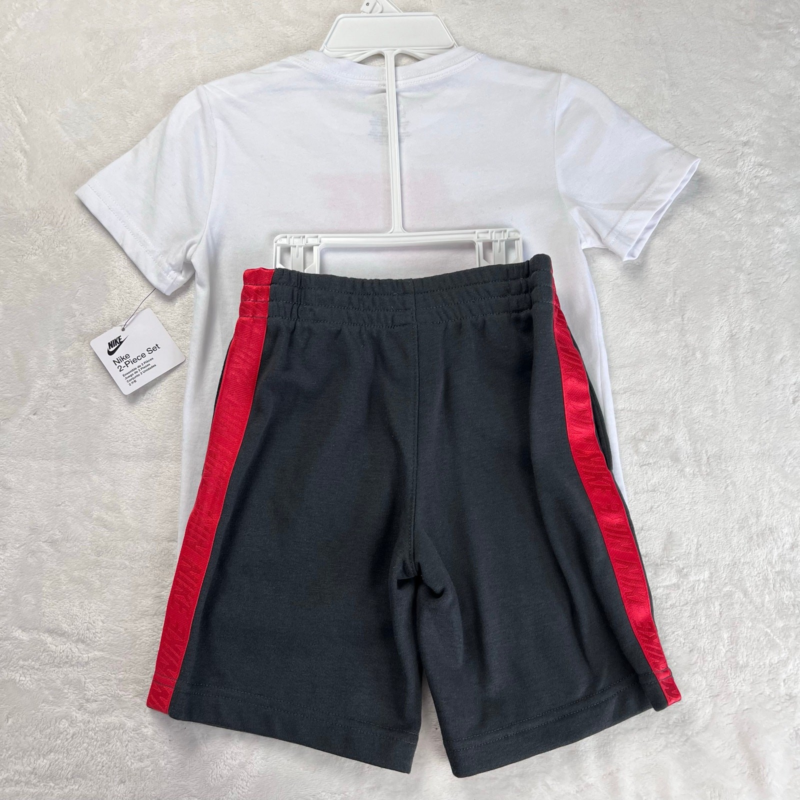 Nike T-shirt Shorts Outfit set Kids Size 6 Gray White Red Swoosh NWT