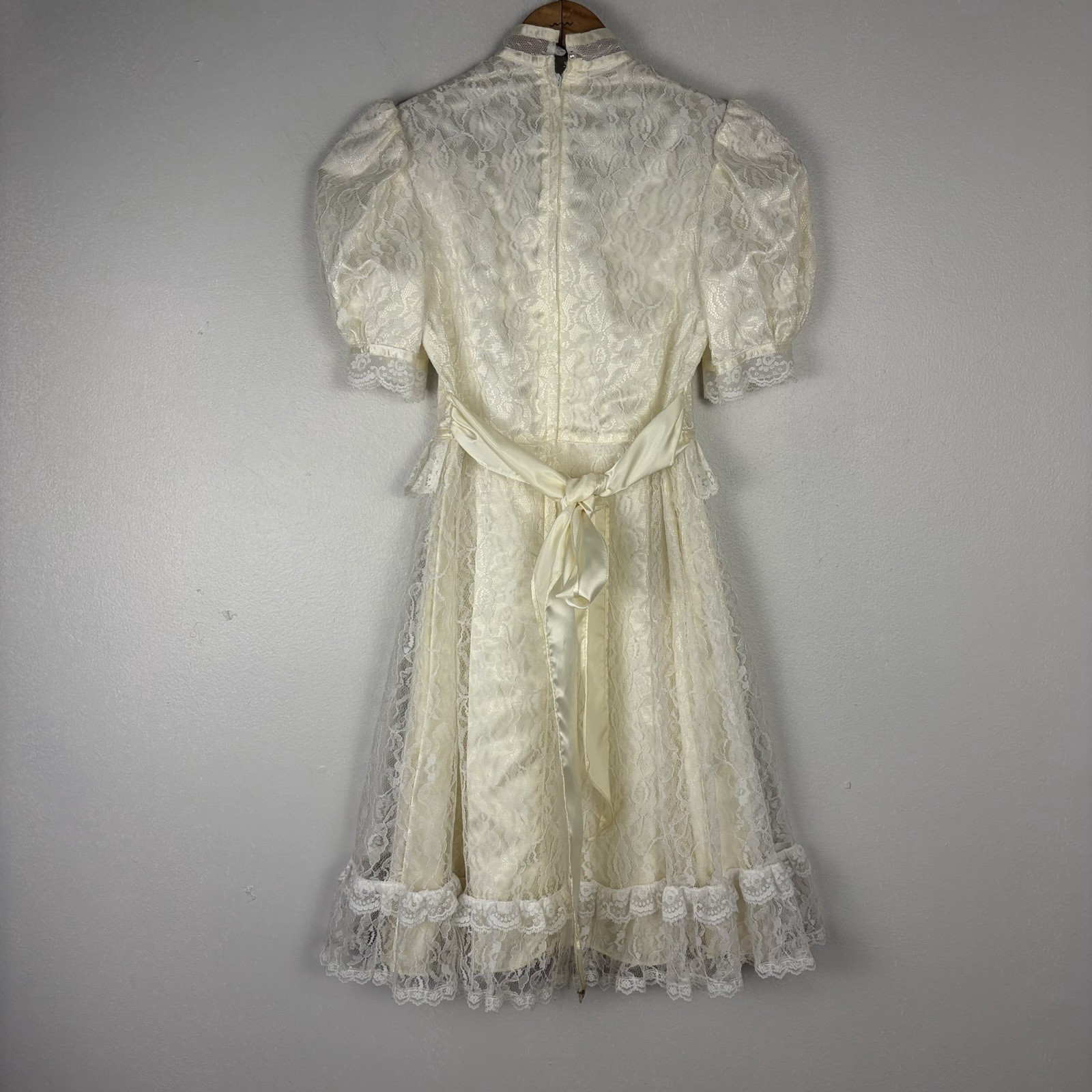 VTG Jessica McClintock Ivory Lace Dress Girls 10 Puff Sleeve Communion Formal