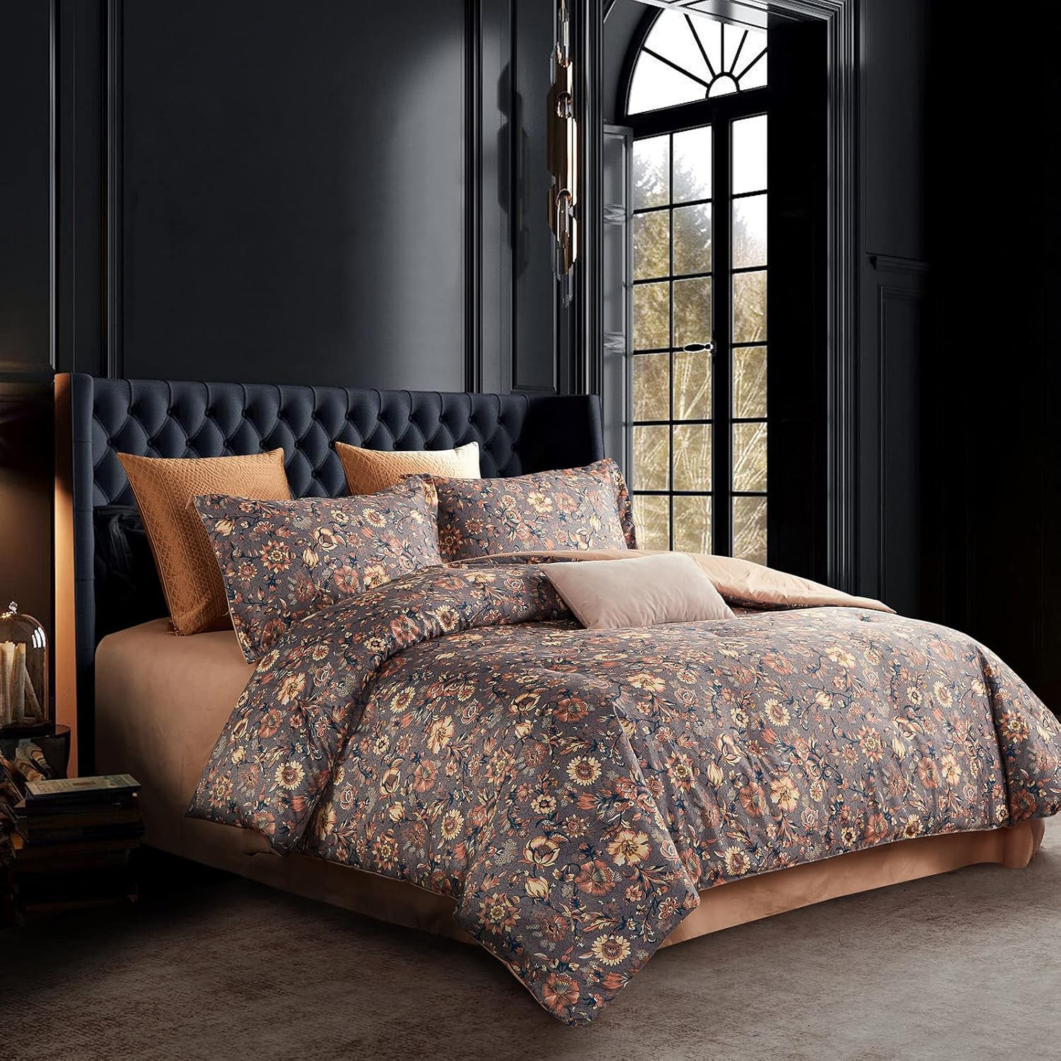 Duvet Cover Queen Size Set - Vintage Soft Bedding with Beautiful Boho Floral Pat