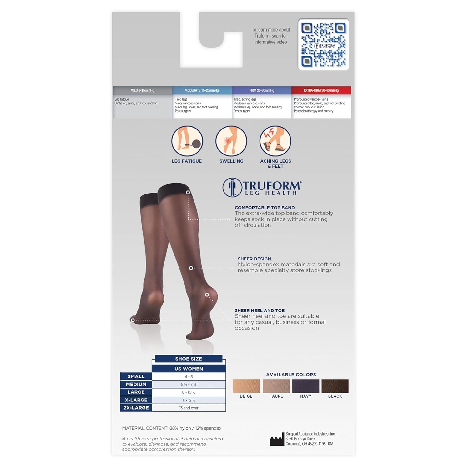 Sheer Compression Stockings, 8-15 Mmhg, Women'S Knee High Length, 20 Denier, Be