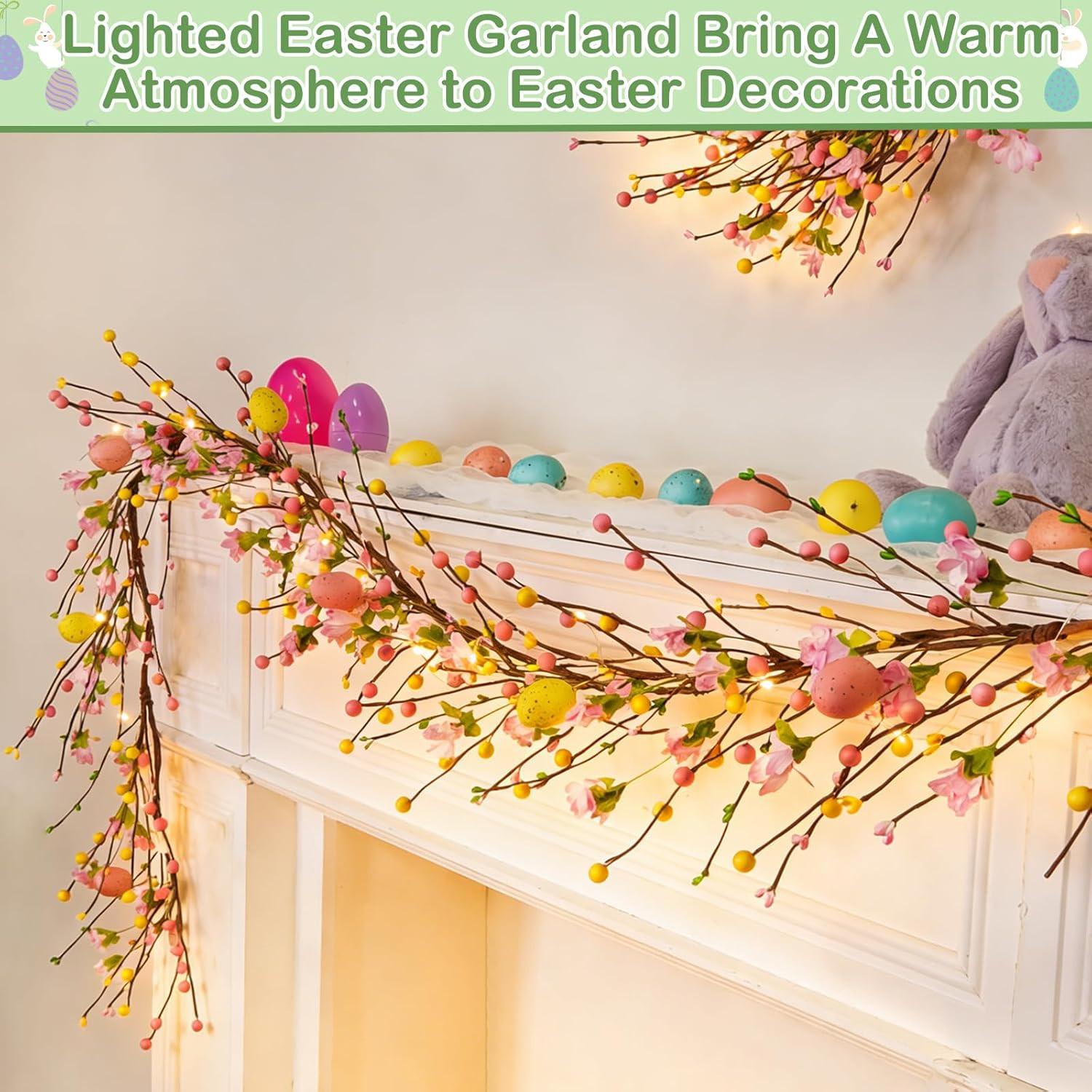 как выглядит 6 Ft Easter Garland with Lights Timer Easter Decorations, Artificial Easter Egg фото