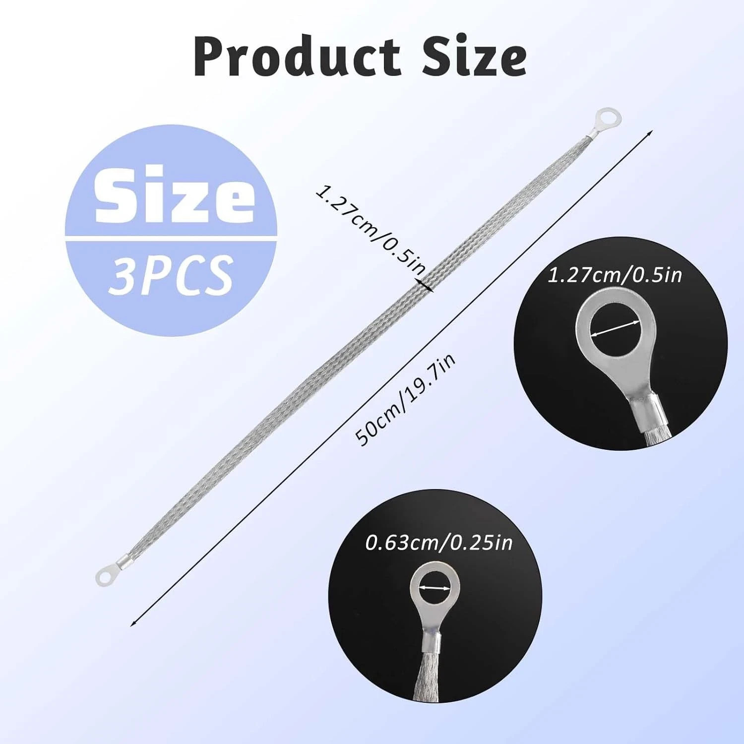 • 3Pcs Ground Strap 20"x1/2" Tinned Copper Braided Vehicle Engine Grounding Straps