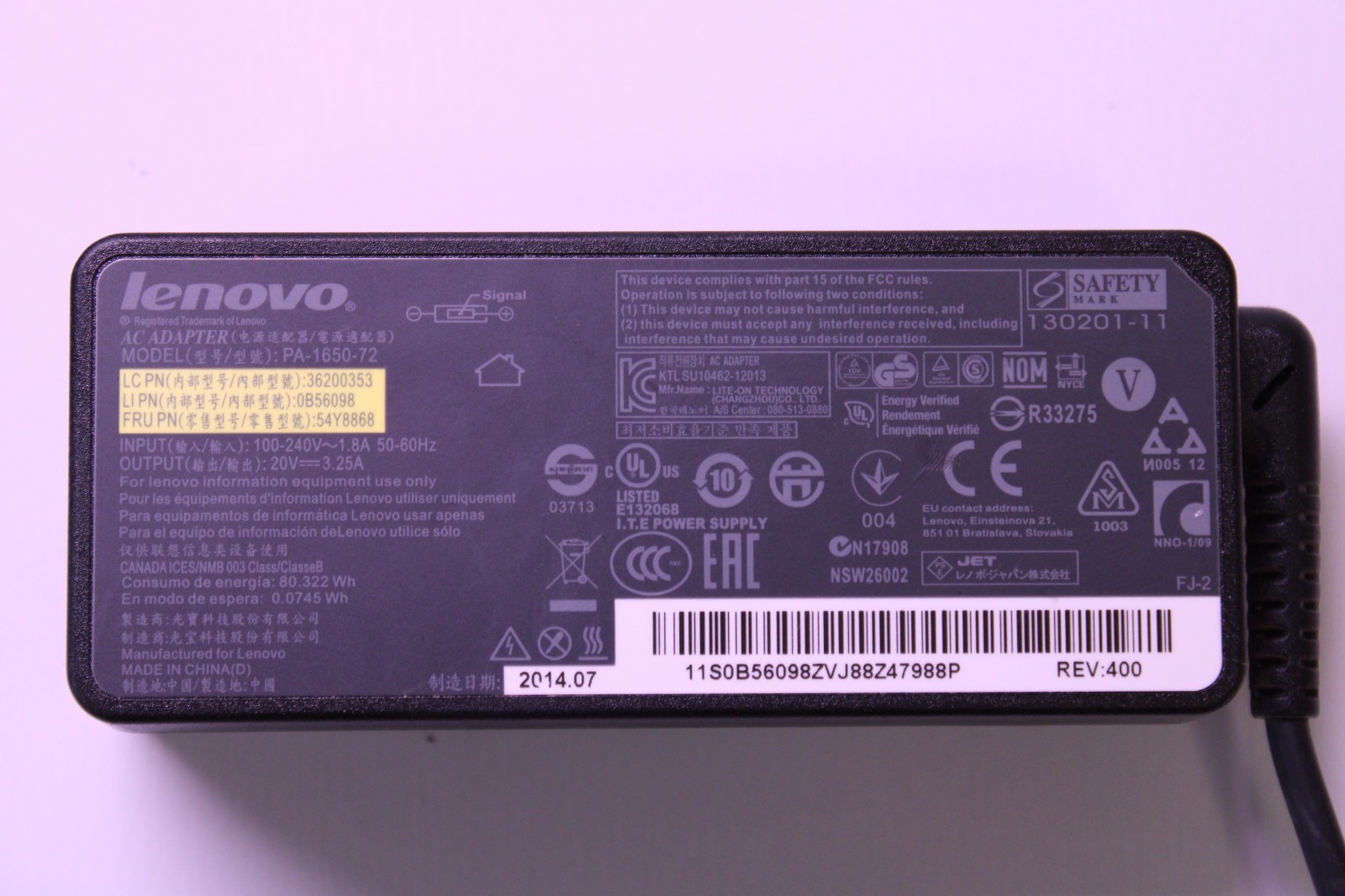 Lot of 10 Lenovo 65W Slim Tip Laptop Chargers 20V 3.25A OEM Tested