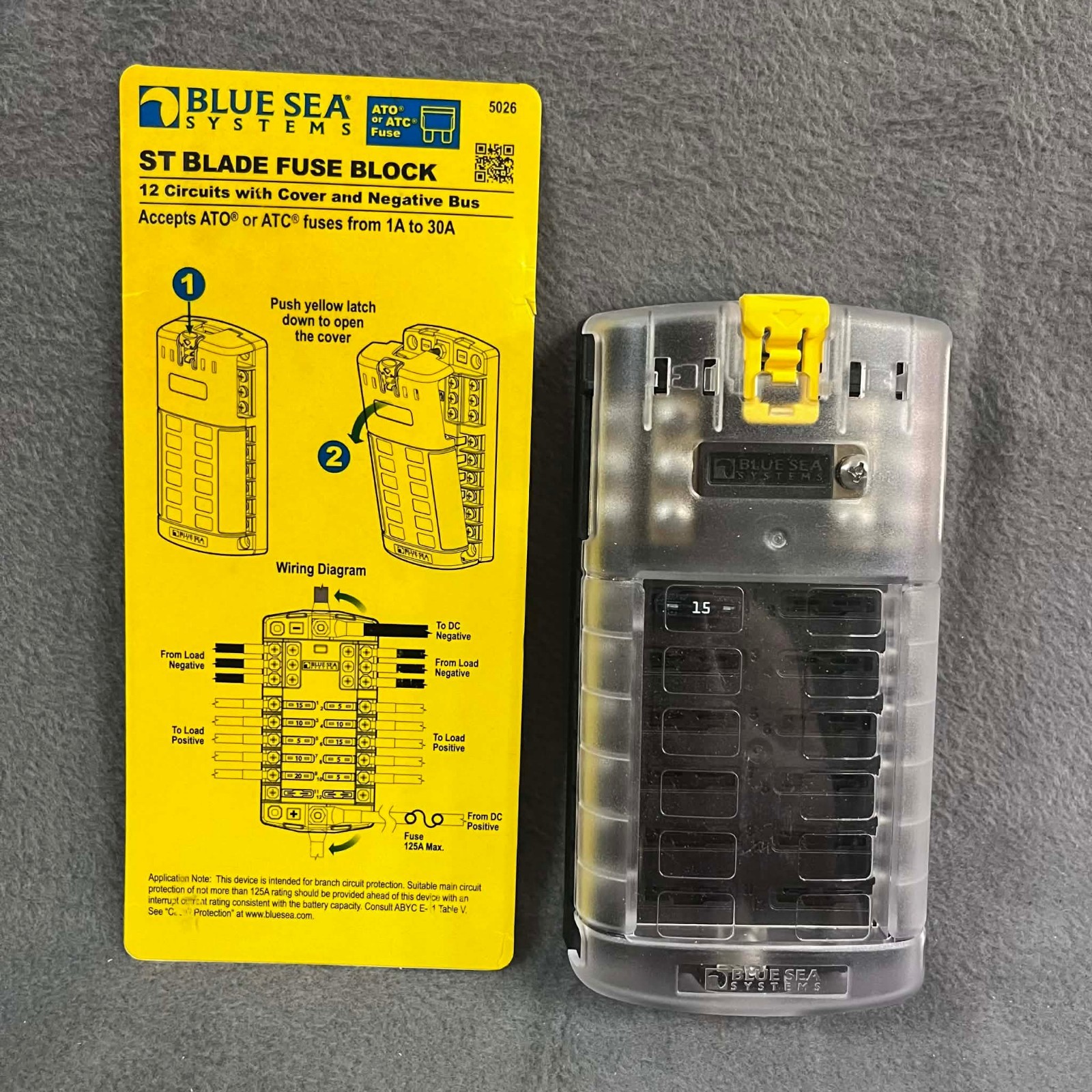Blue Sea Systems ST Blade Fuse Block 12 Circuits w Negative Bus/Cover 5026