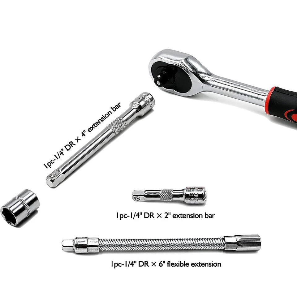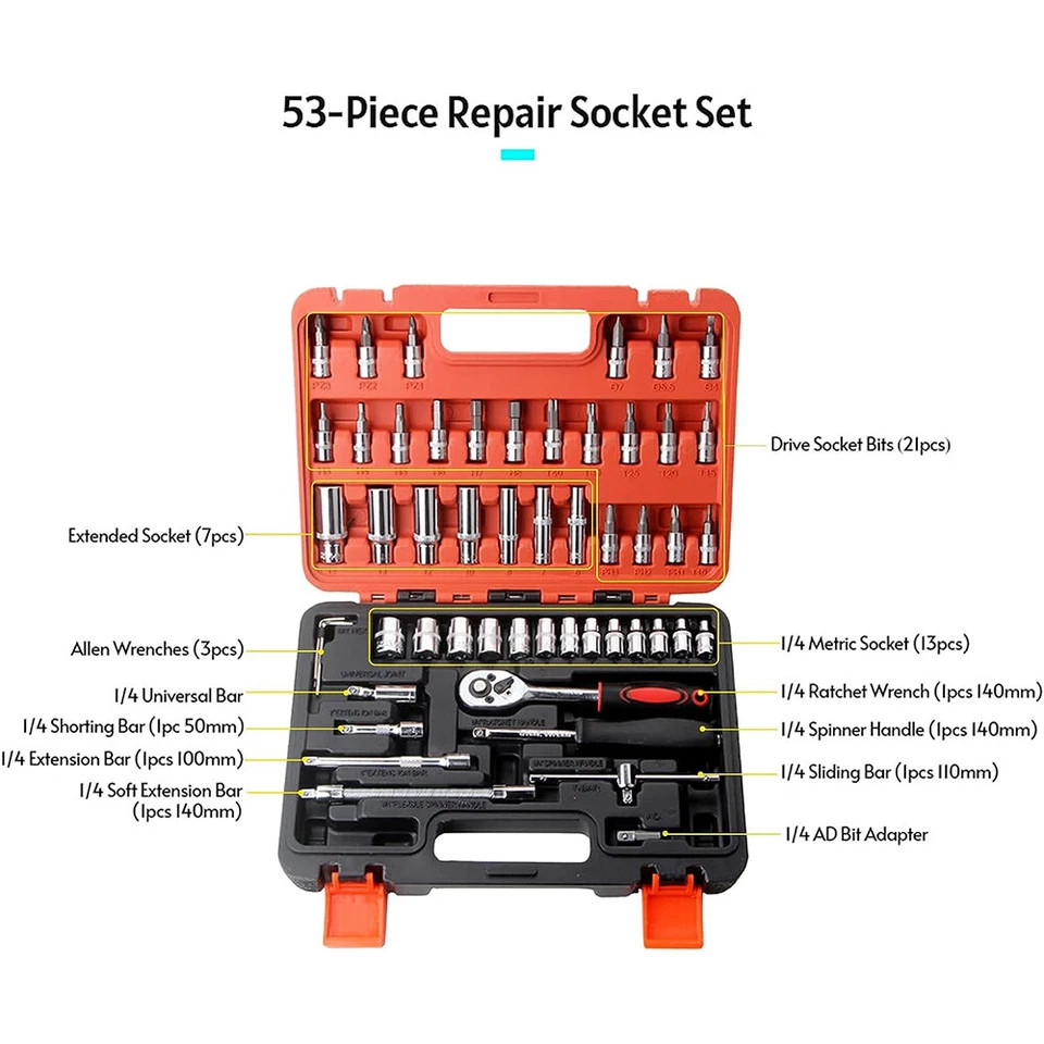 53PCS 1/4 Ratchet Wrench Combination Socket Tool Set Kit Auto Car Repair Tool