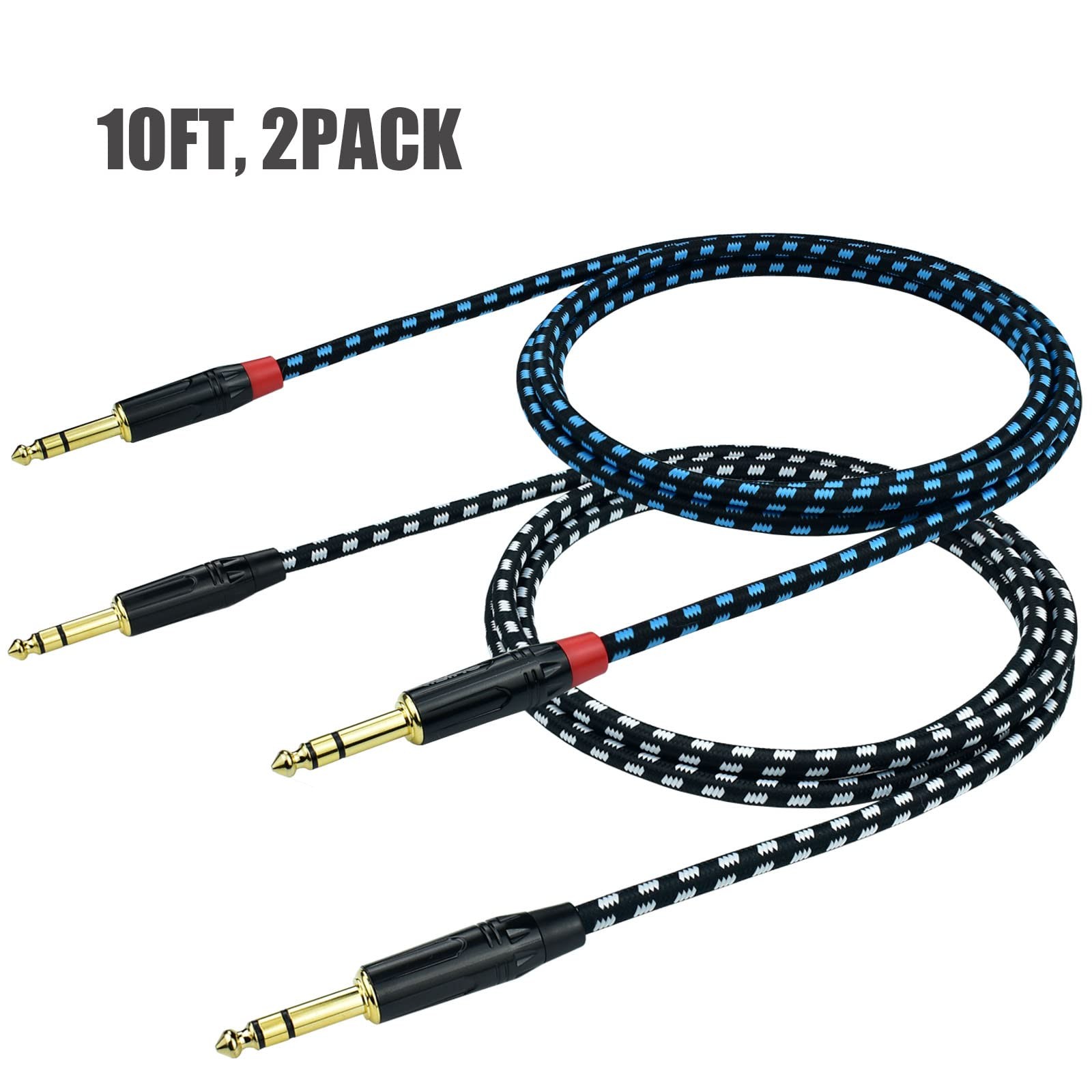 Balanced 1/4 Inch TRS to TRS Male Instrument Patch Cable, 10 Feet Stereo Quar...