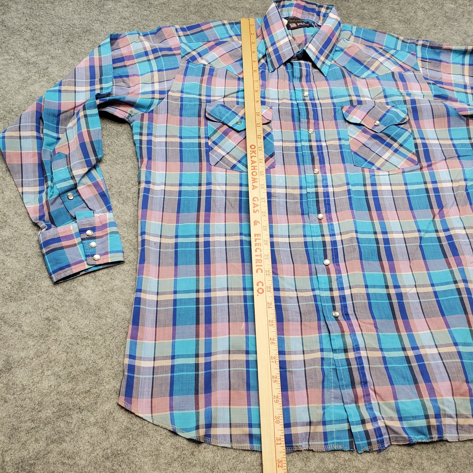 как выглядит Vtg Panhandle Slim Shirt Mens Size 17.5-36 Plaid Long Sleeve Pearl Snap USA фото