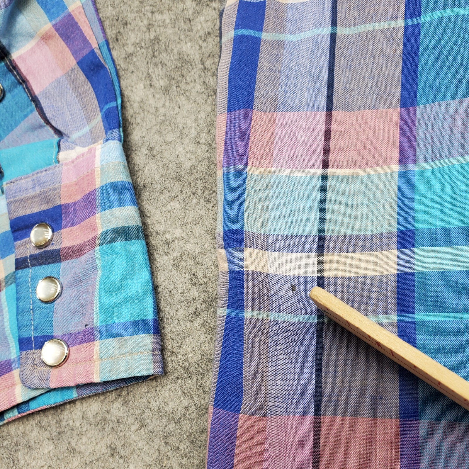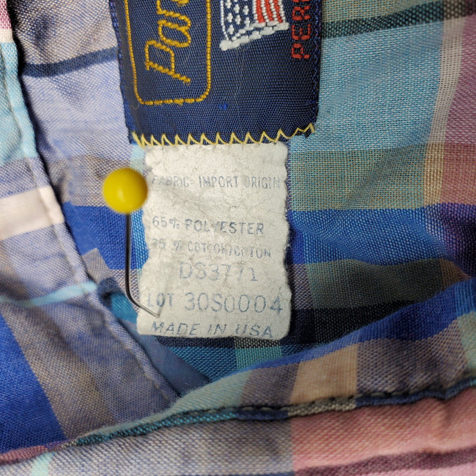 Vtg Panhandle Slim Shirt Men's Size 17.5-36 Plaid Long Sleeve Pearl Snap USA