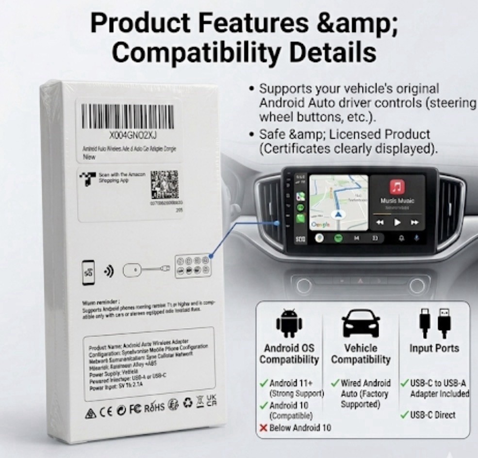 Wireless Android Auto Adapter - Fast Connection 2026 New Series