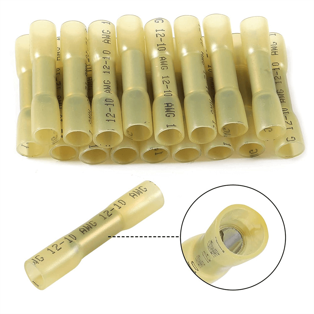 100pcs Gauge 12-10AWG Wire Heat Shrink Crimp Terminals Butt Connector Yellow US