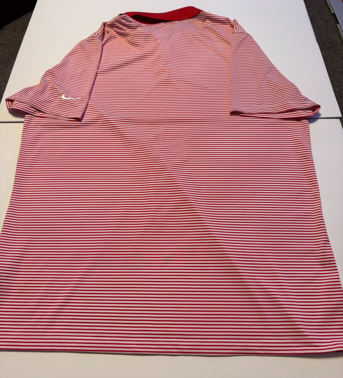 Nike Golf Dri Fit Polo Shirt Mens XL Red White Striped Standard Fit Performance
