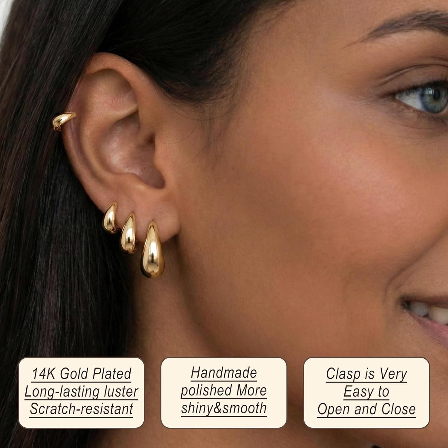 Chunky Gold Hoop Earrings Set for Women 4 Pair, 14K Gold Plated 925 Sterling Sil