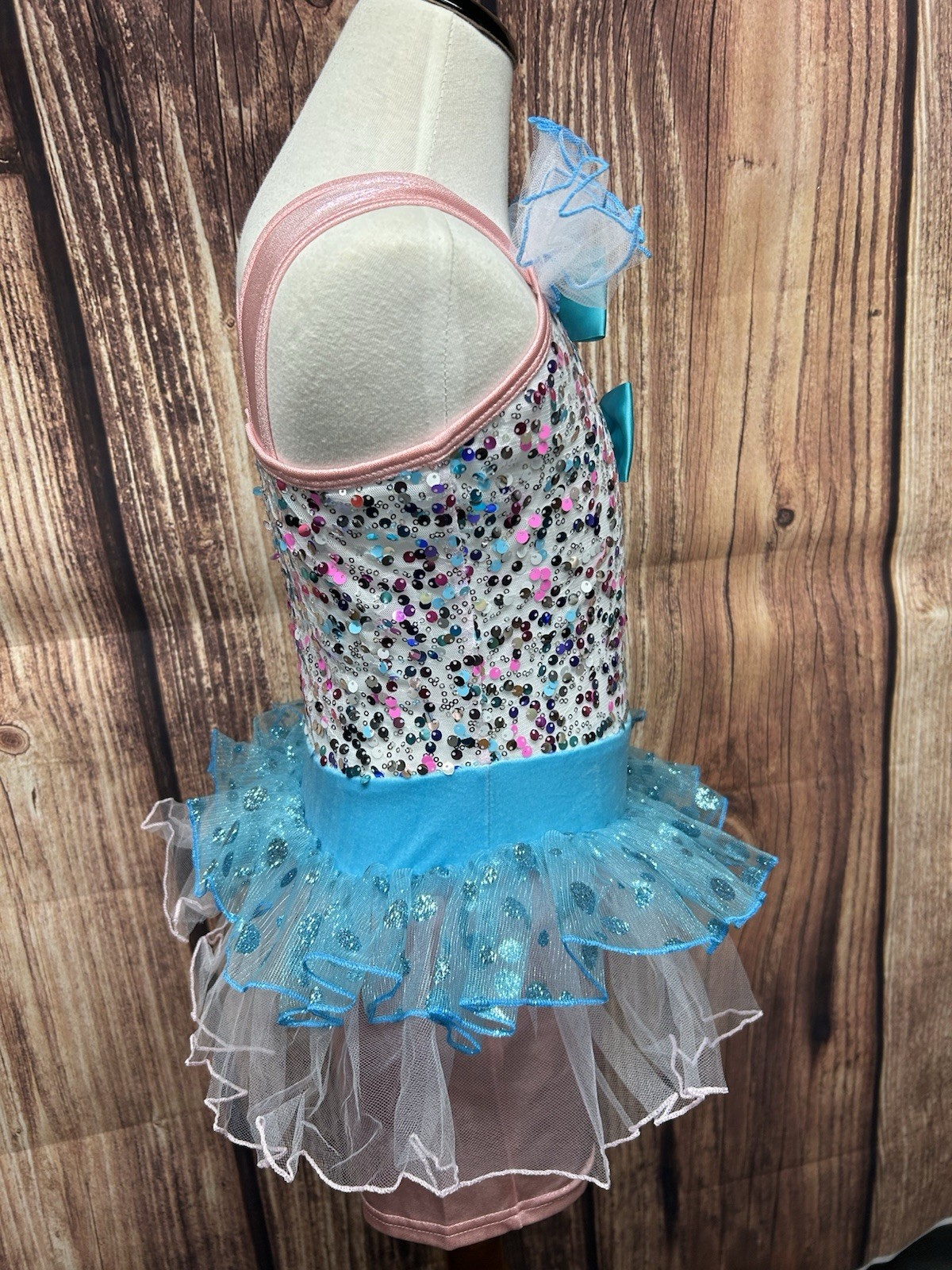 как выглядит Curtain Call Under the Bigtop Dance Costume Pink/Blue w/ Sequins Child Med фото