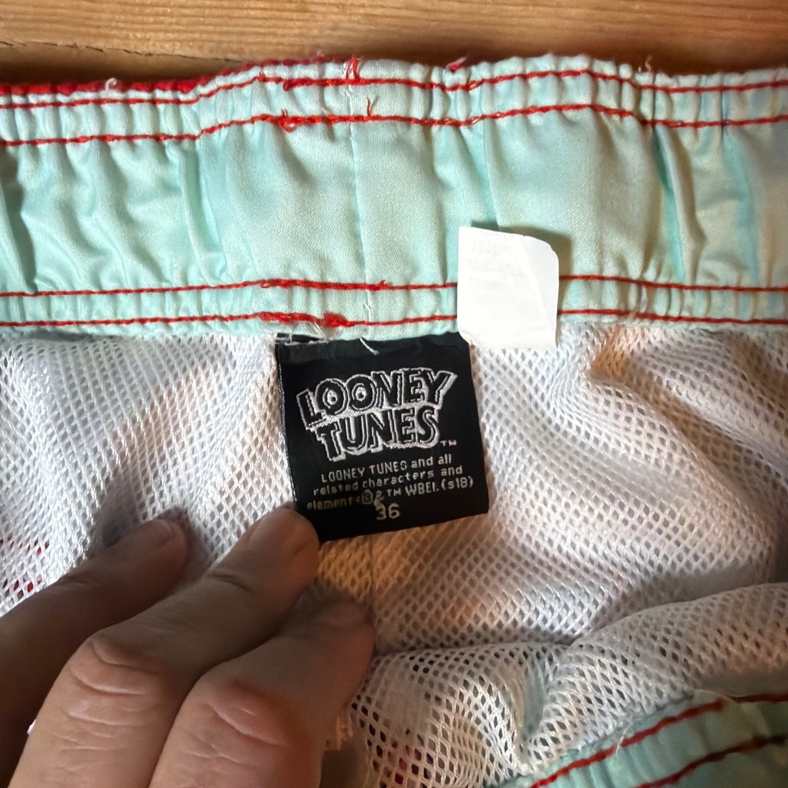 Looney Tunes Mens Bugs Bunny Tasmanian Devil Tropical Swim Trunks Blue Red 36