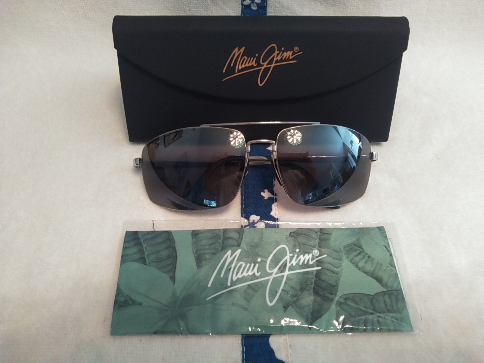 NEW Maui Jim Sandalwood Aviator MJ 217- 17 Silver Frame Grey Polarized Lenses