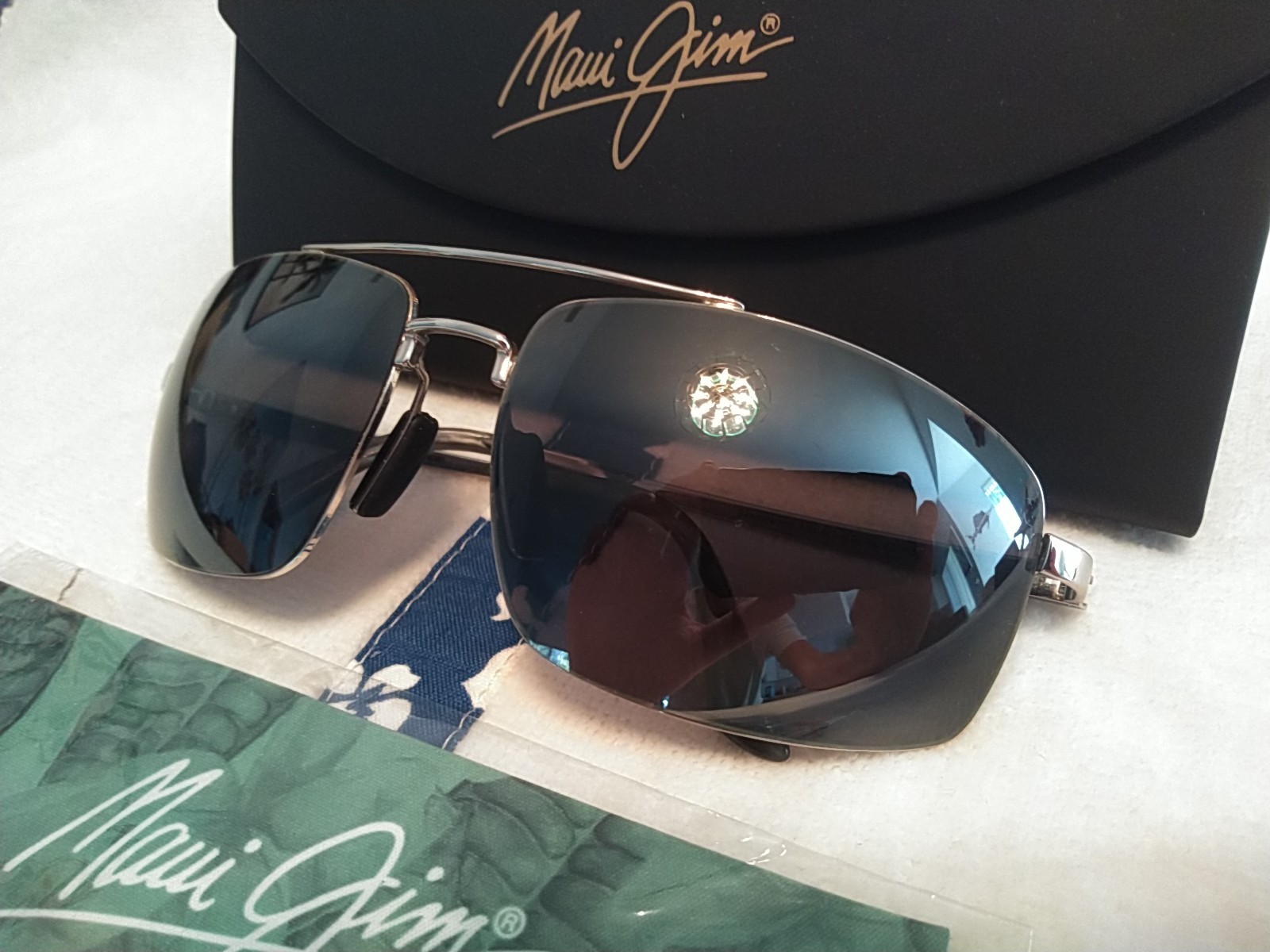 как выглядит NEW Maui Jim Sandalwood Aviator MJ 217- 17 Silver Frame Grey Polarized Lenses фото
