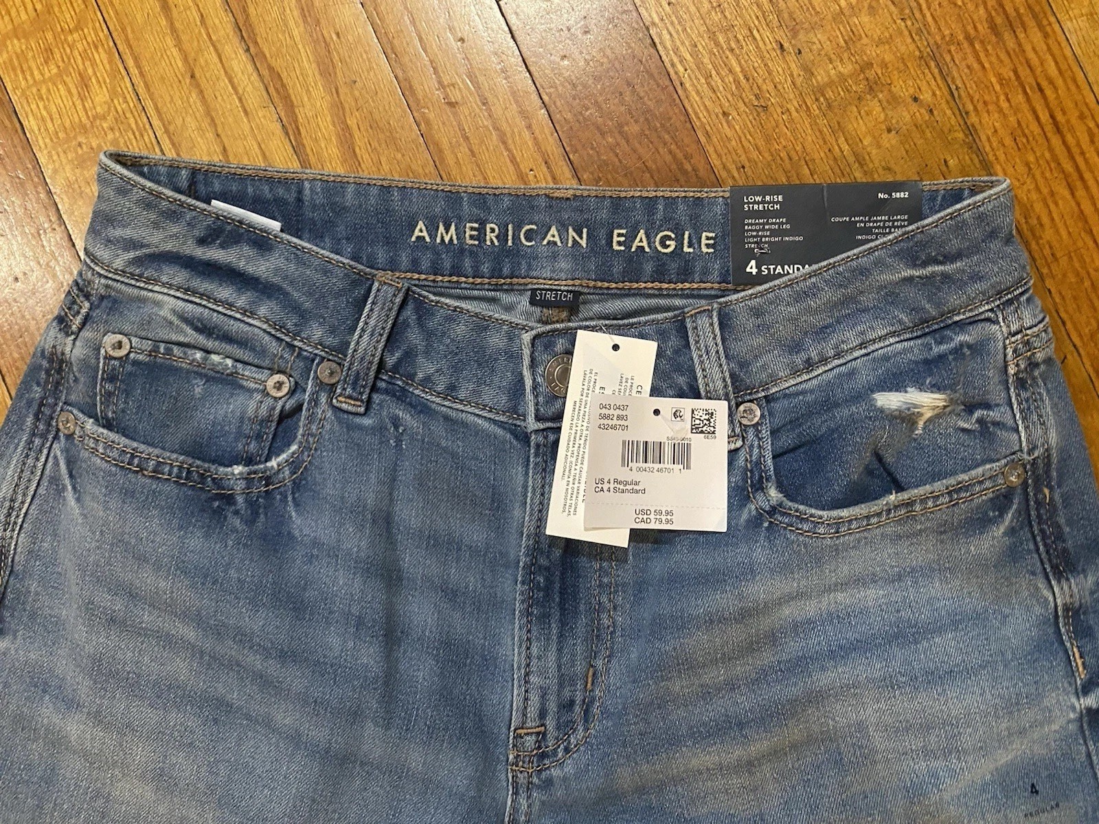 AE Dreamy Drape Stretch Super High-Waisted Baggy Wide-Leg Jean Size 4