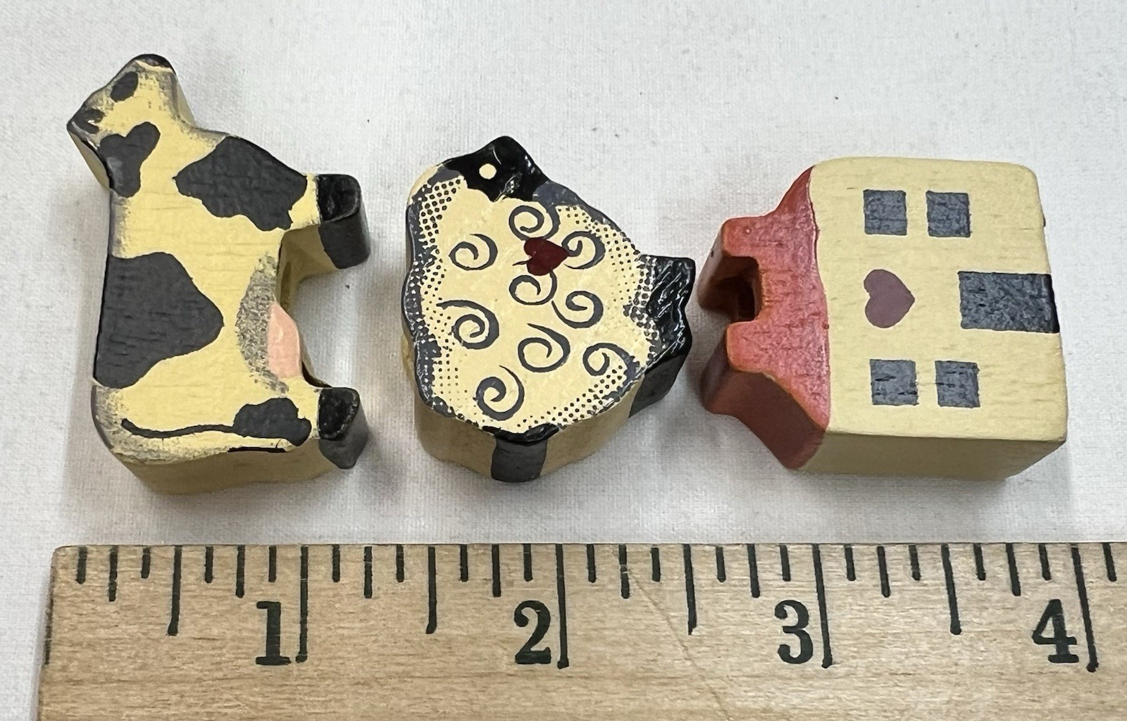 12 NOS, Vintage, Macrame, Wooden COW, SHEEP, HOUSE Beads 4ea. Never Used, Loose