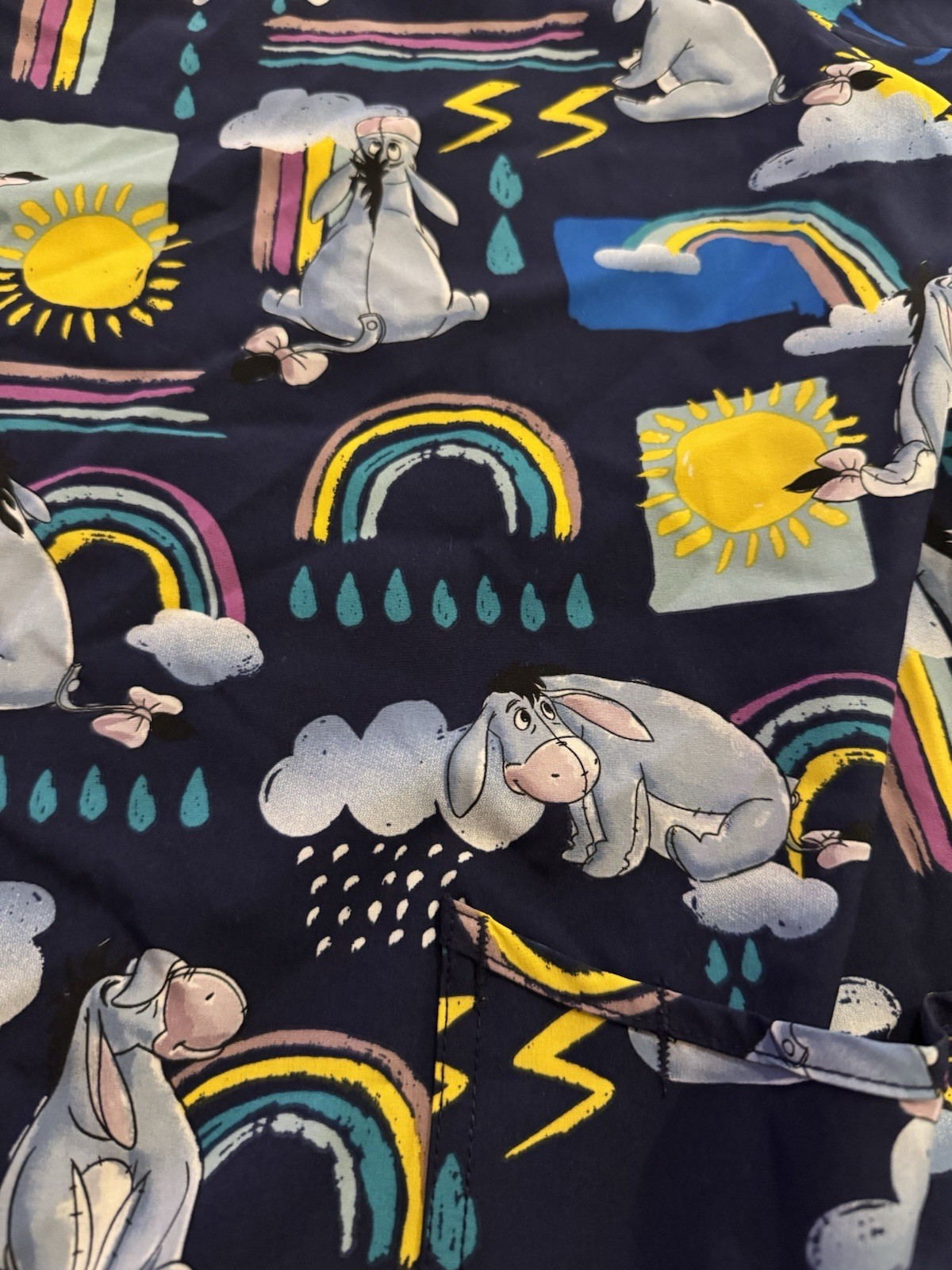 как выглядит Disney Eeyore Rainbow Clouds Scrub Top Womens Medium V-Neck Short Sleeve фото