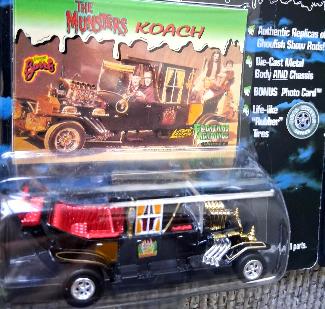 4 1999 Johnny Lightning Munsters Cars, Koach - Dragula - Hearse - Undertaker