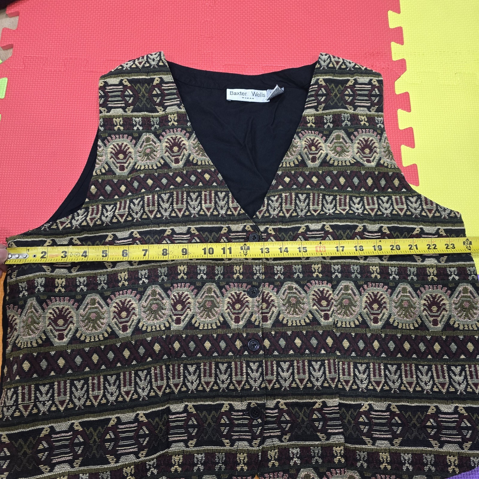 как выглядит VTG Baxter Wells Woman Tapestry Vest Size 22W Boho Geometric Southwestern 90s фото